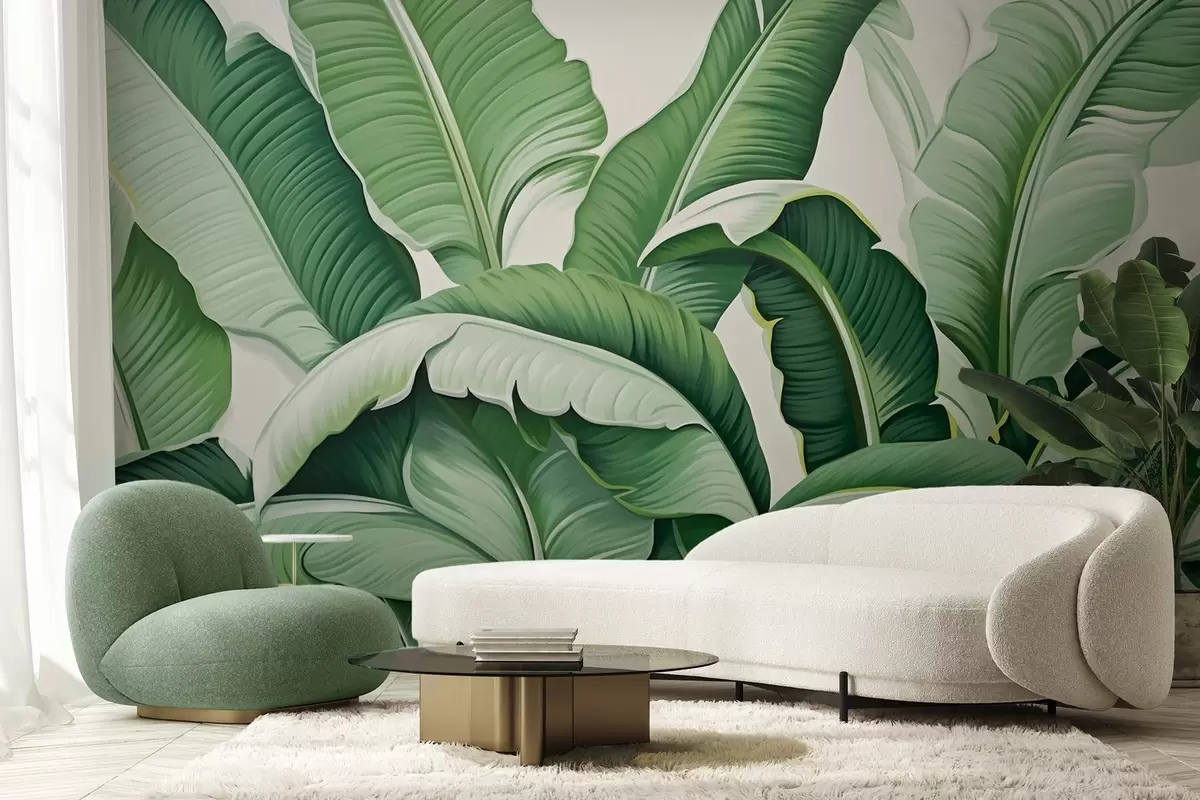 Murais de parede Folhas verdes de bananeira tropical com efeito 3D Nr. w09559