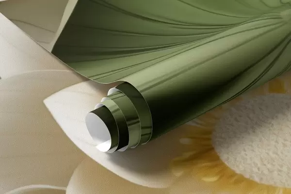 Murais de parede Flores de lótus em 3D com folhas verdes texturizadas, estilo minimalista Nr. w09560