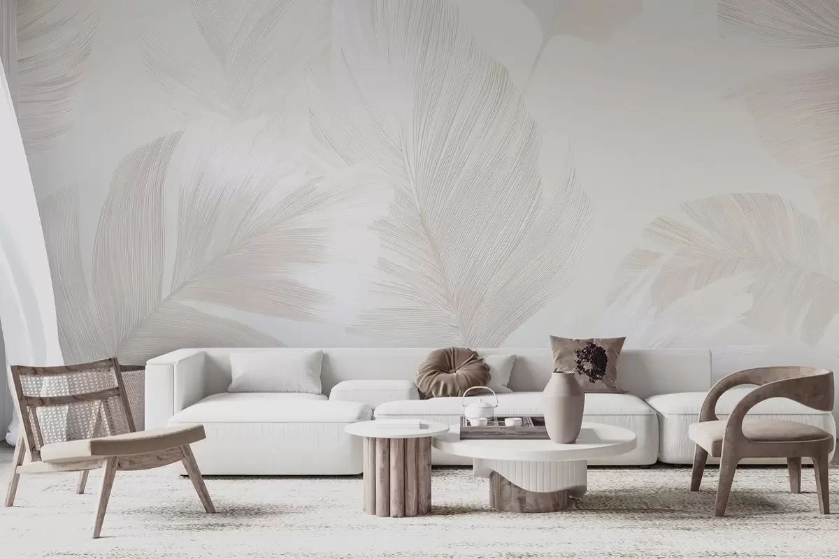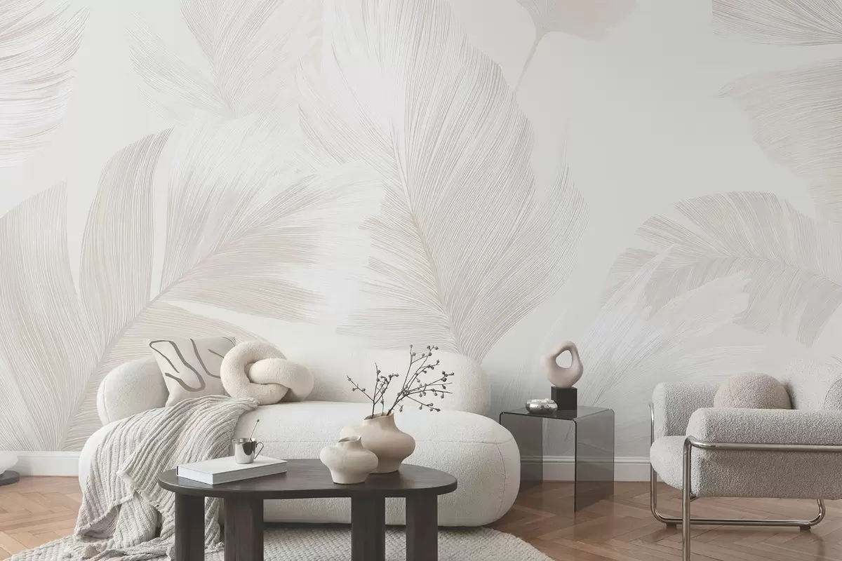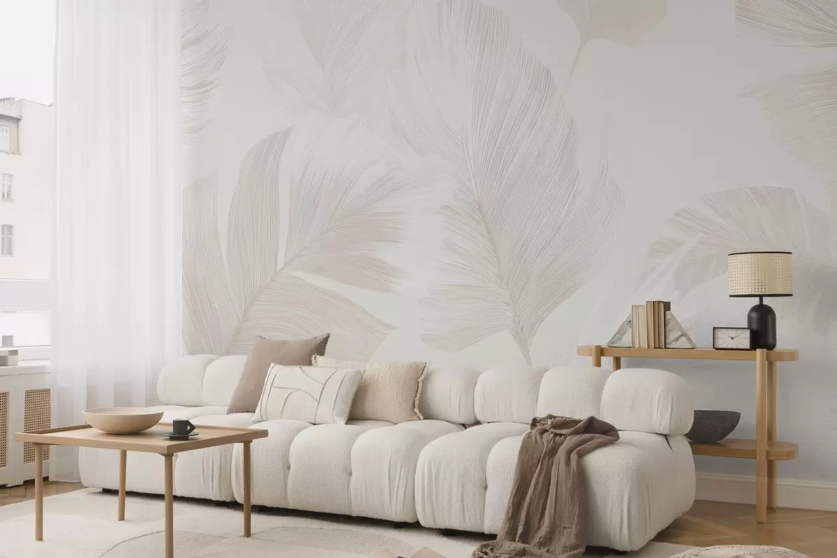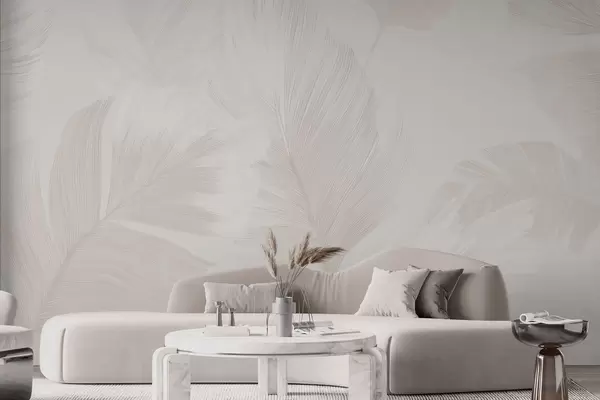 Murais de parede Penas macias em tons de bege leitoso Nr. w09563