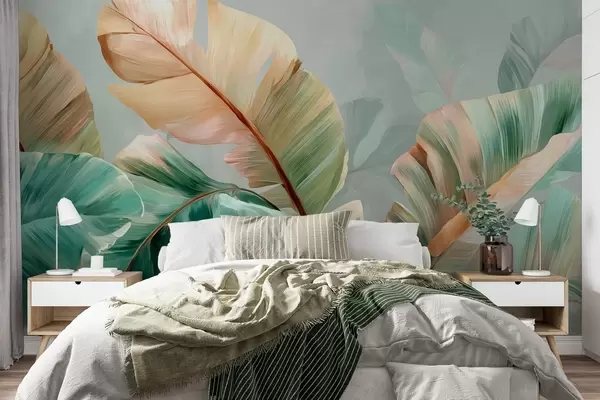 Murais de parede Delicadas folhas de bananeira tropical em tons pastel de amarelo-esverdeado Nr. w09581