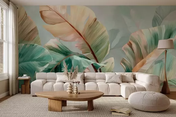 Murais de parede Delicadas folhas de bananeira tropical em tons pastel de amarelo-esverdeado Nr. w09581