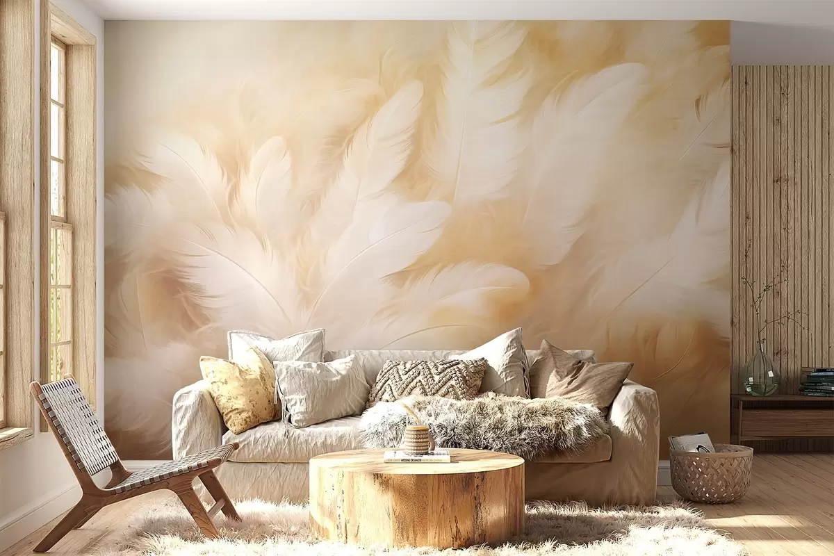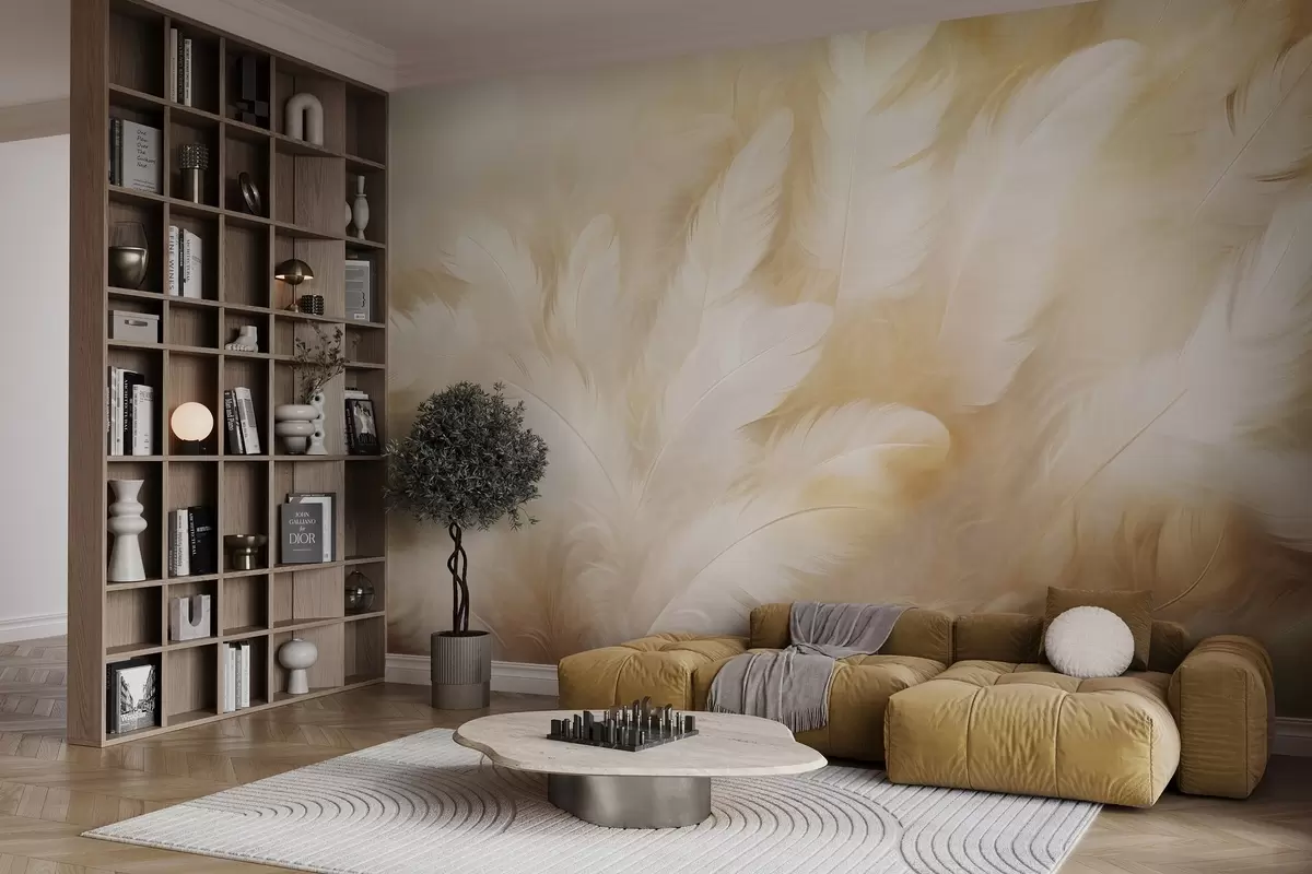Murais de parede Penas brancas e amarelas com textura macia Nr. w09606