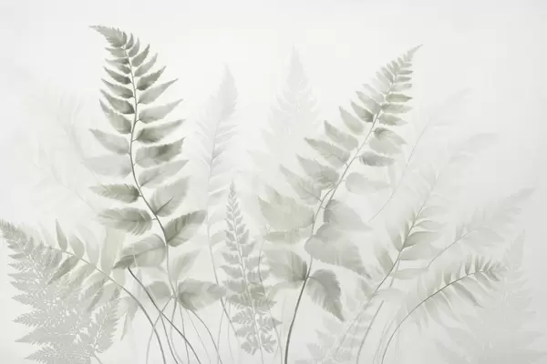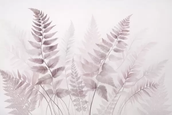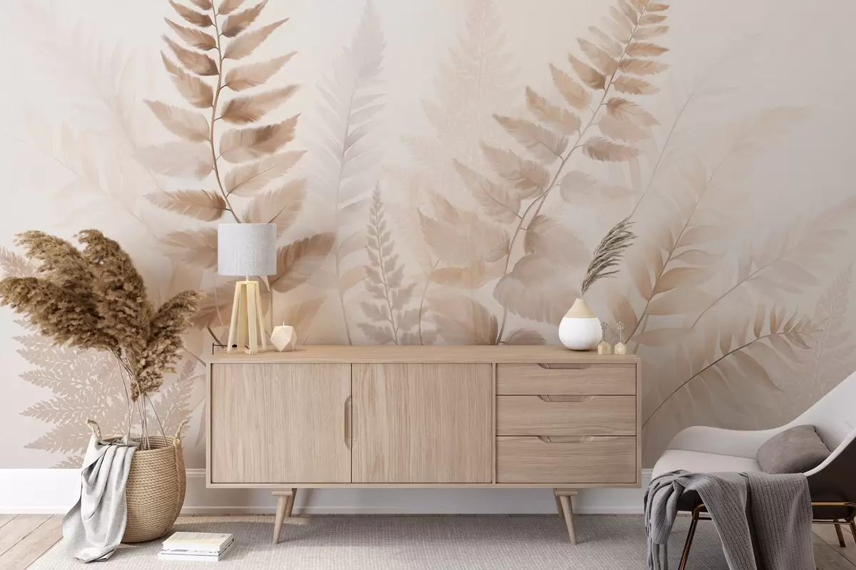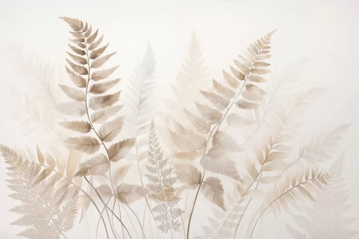 Murais de parede Folhas secas de samambaia texturizadas em vários tons de marrom, com um fundo suave e claro em estilo aquarela. Nr. w09615