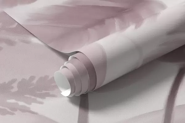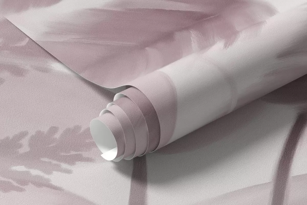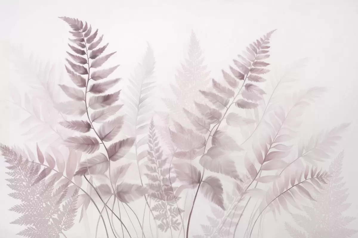 Murais de parede Folhas secas de samambaia texturizadas em vários tons de rosa, com um fundo suave e claro em estilo aquarela. Nr. w09615v2