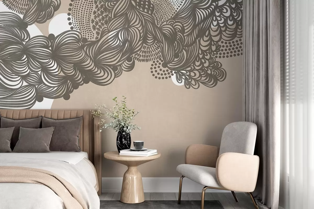 Murais de parede Desenho abstrato texturizado sobre fundo bege, com traços intricados e texturas pontilhadas. Nr. w09621