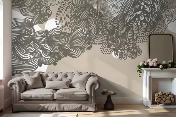 Murais de parede Desenho abstrato texturizado sobre fundo bege, com traços intricados e texturas pontilhadas. Nr. w09621