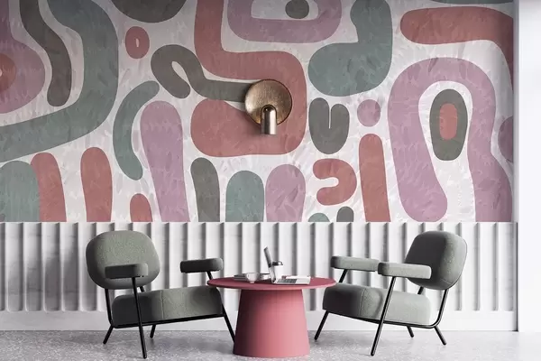 Murais de parede Formas abstratas texturizadas em tons suaves de rosa, verde e cinza, sobre um fundo texturizado de arte moderna Nr. w09622