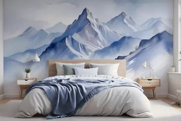 Murais de parede Montanhas nevadas texturizadas com um efeito suave de aquarela e uma paleta de azul e branco Nr. w09630