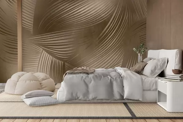 Murais de parede Estampa abstrata de linhas fluidas e curvas em tons de marrom escuro, criando uma arte moderna e texturizada. Nr. w09646