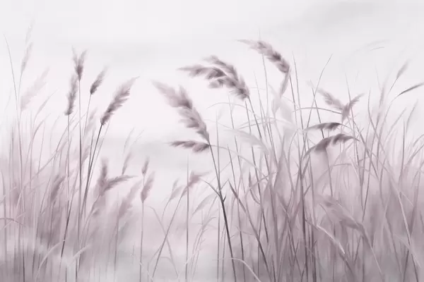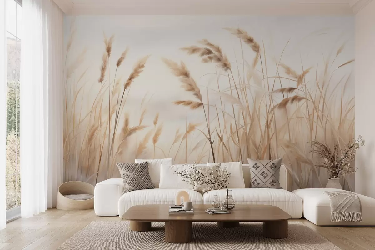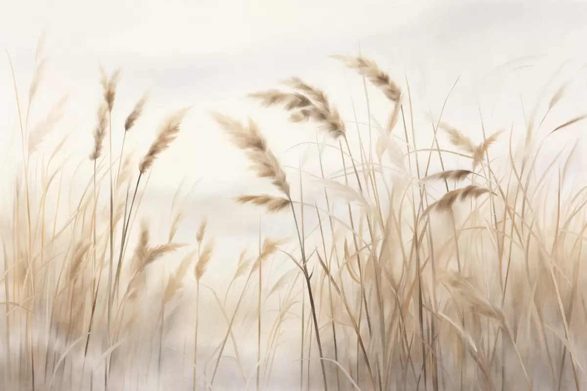 Murais de parede Grama alta e seca com espigas de trigo no campo contra um fundo suave e claro Nr. w09648
