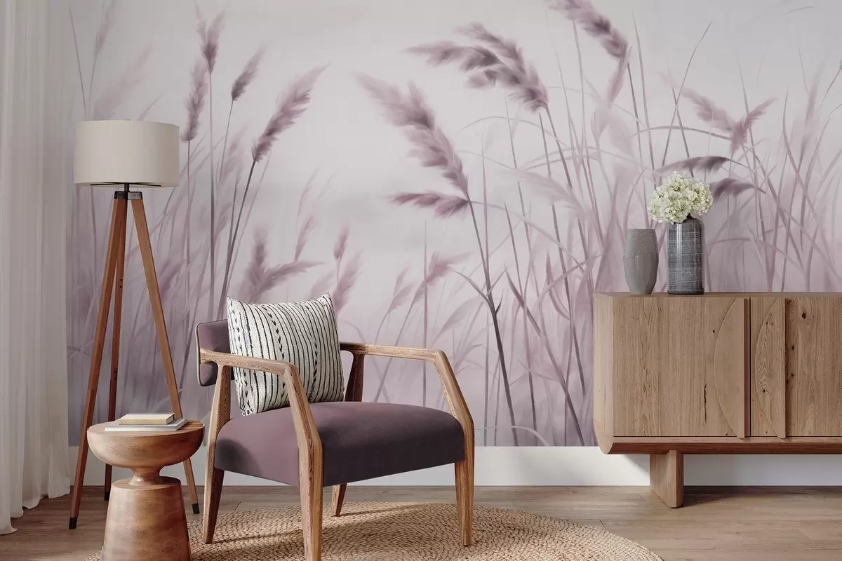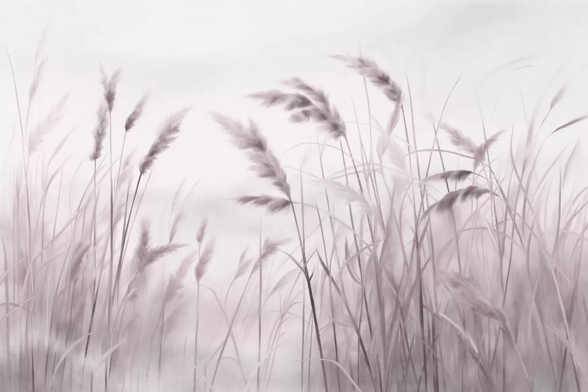 Murais de parede Grama alta e seca com espigas de trigo no campo contra um fundo suave e claro Nr. w09648v2