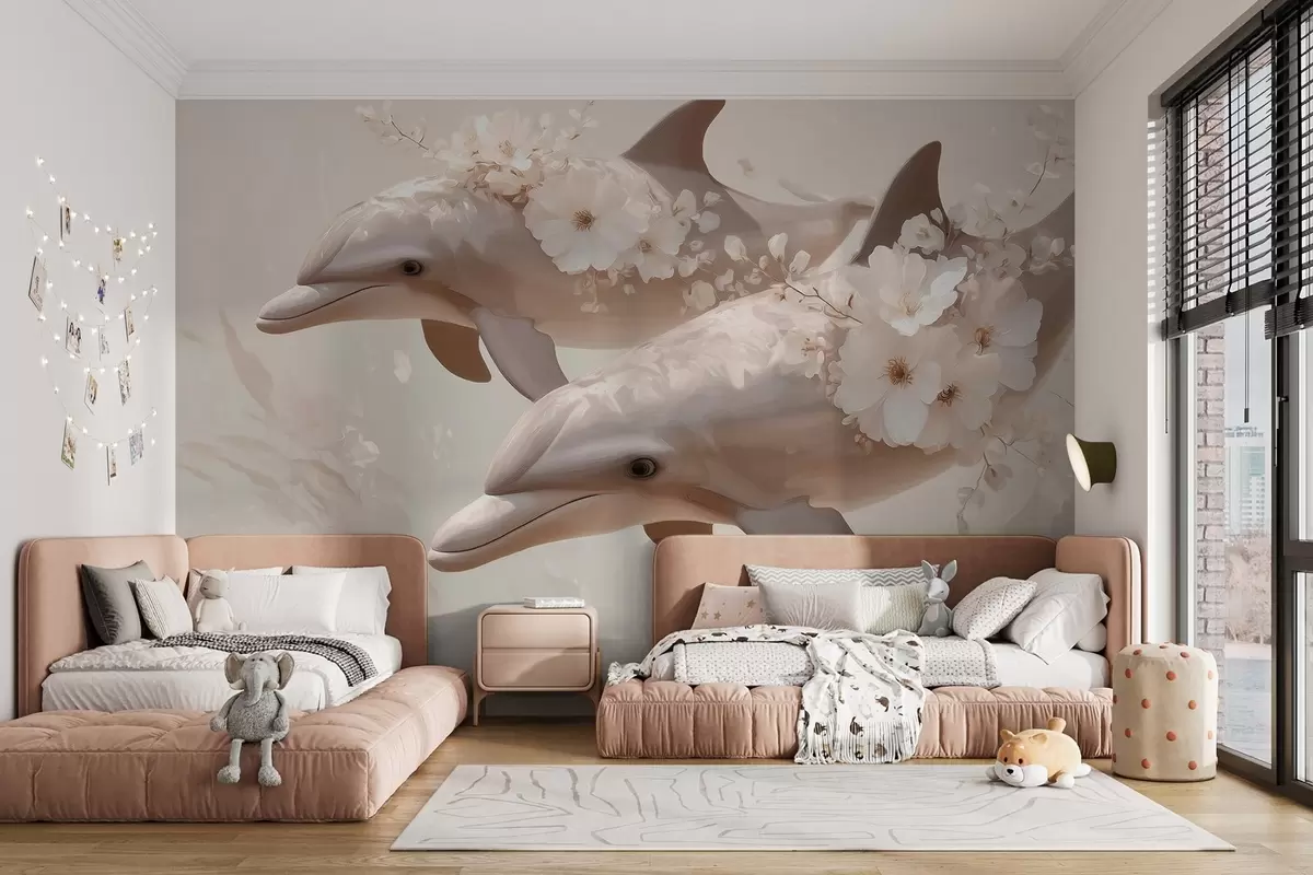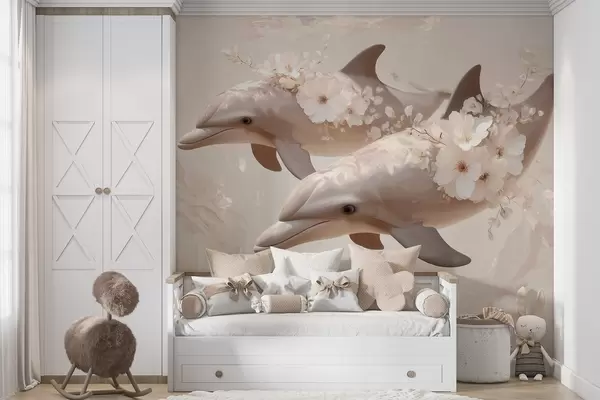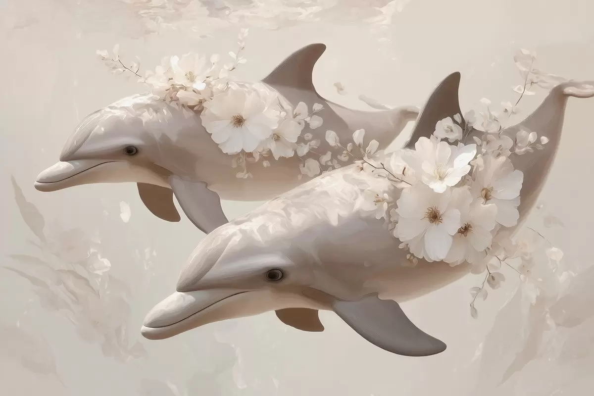 Murais de parede Golfinhos em um oceano de flores delicadas e luz suave Nr. w09666