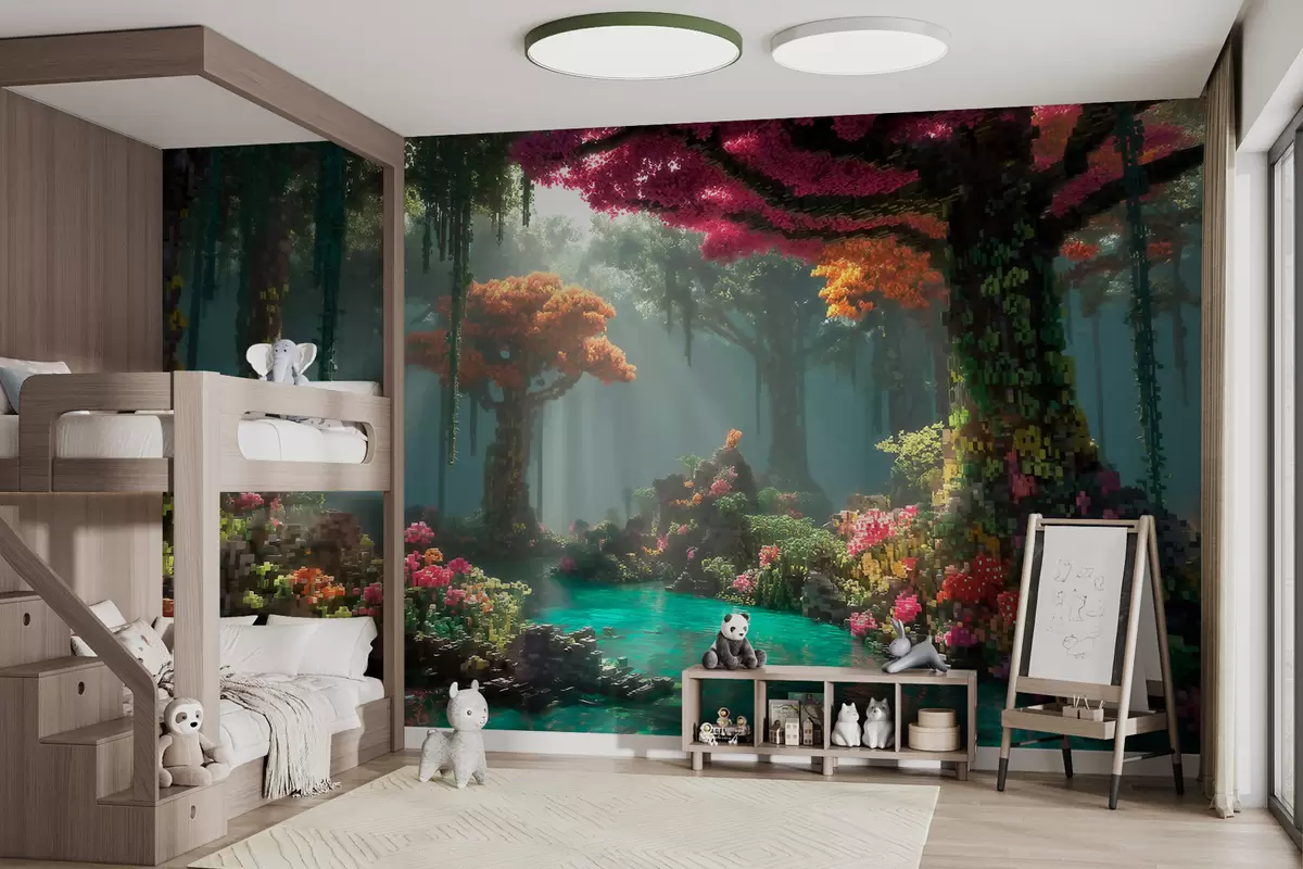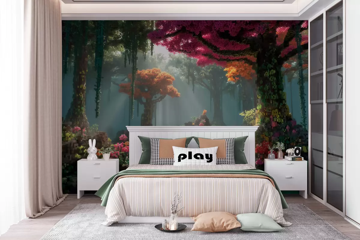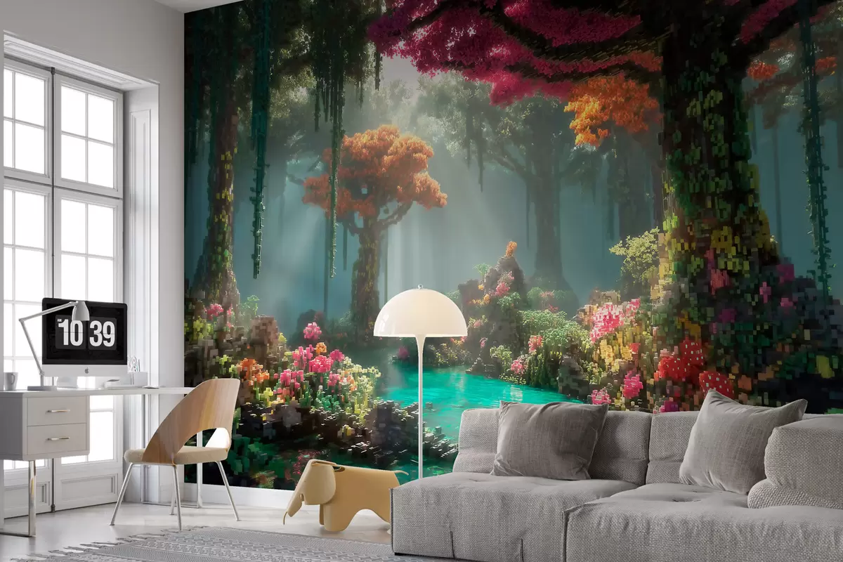 Murais de parede Bosque encantado em estilo pixel, inspirado em videogames Nr. w09683