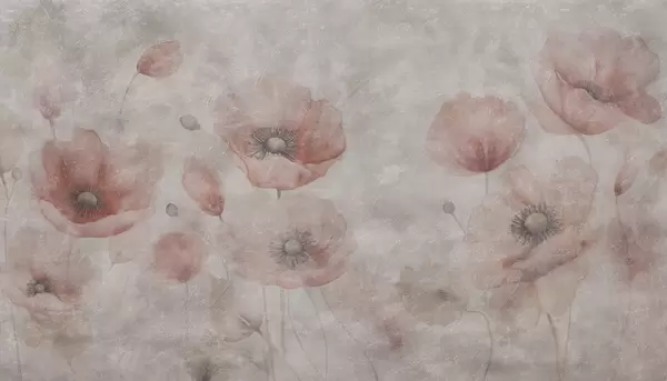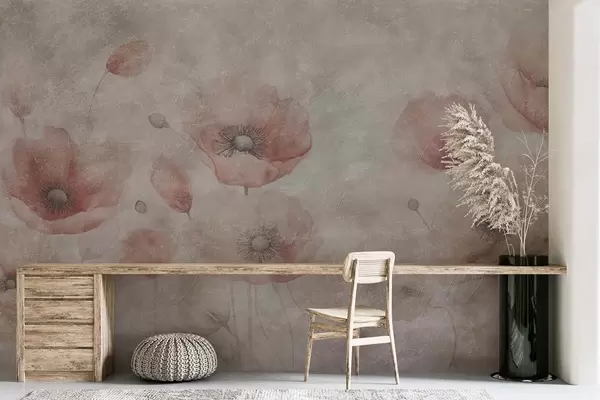Murais de parede Grandes flores de papoila numa parede com efeito antigo Nr. w09686