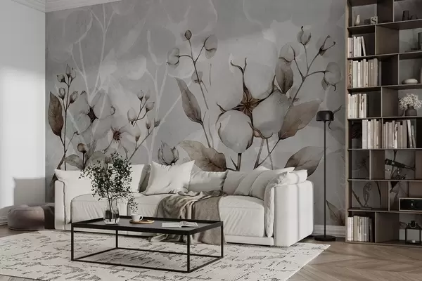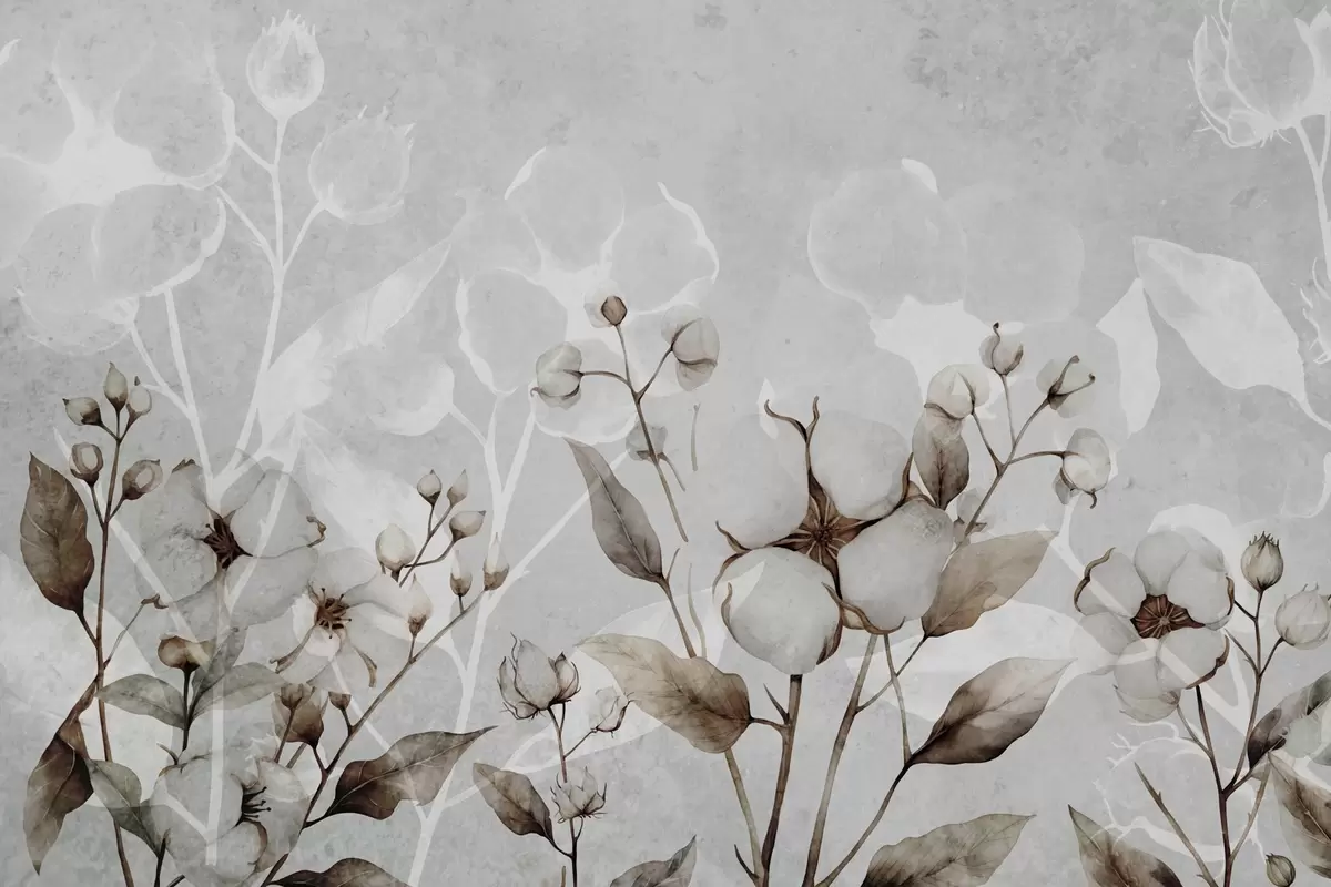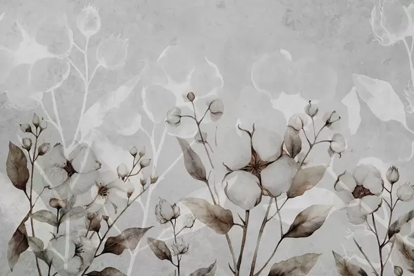 Murais de parede Grandes flores de algodão sobre um fundo cinza claro Nr. w09691