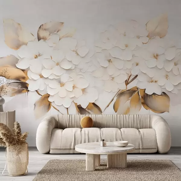 Murais de parede Hortênsias luxuosas com folhas amarelas Nr. w09711