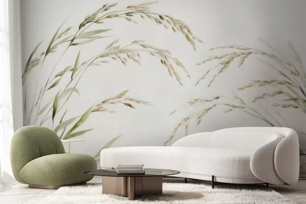 Murais de parede Delicadas gramíneas em tons pastéis com um suave efeito de aquarela Nr. w09712