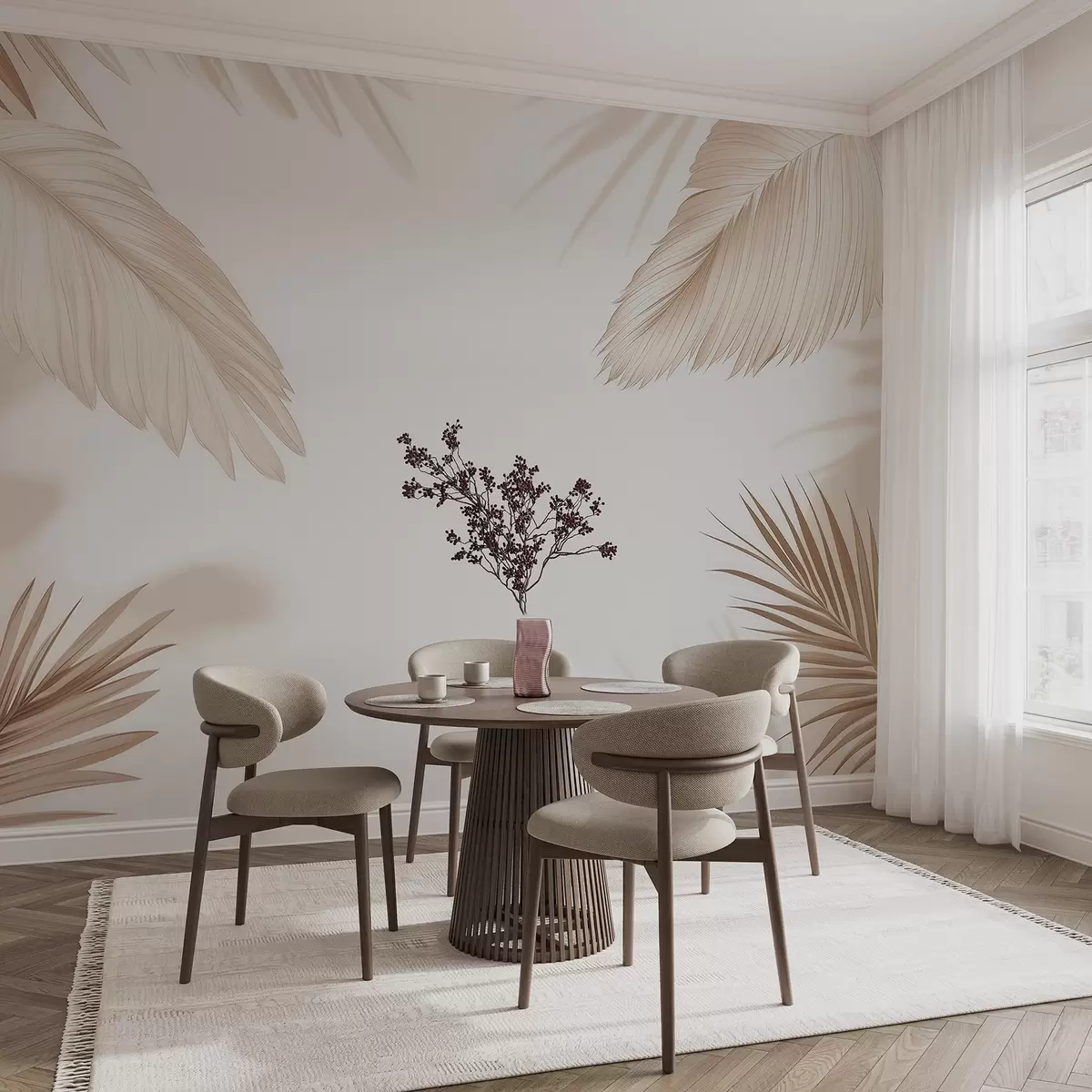 Murais de parede Decoração tropical em tons de bege com silhuetas de folhas de palmeira e sombras suaves Nr. w09714