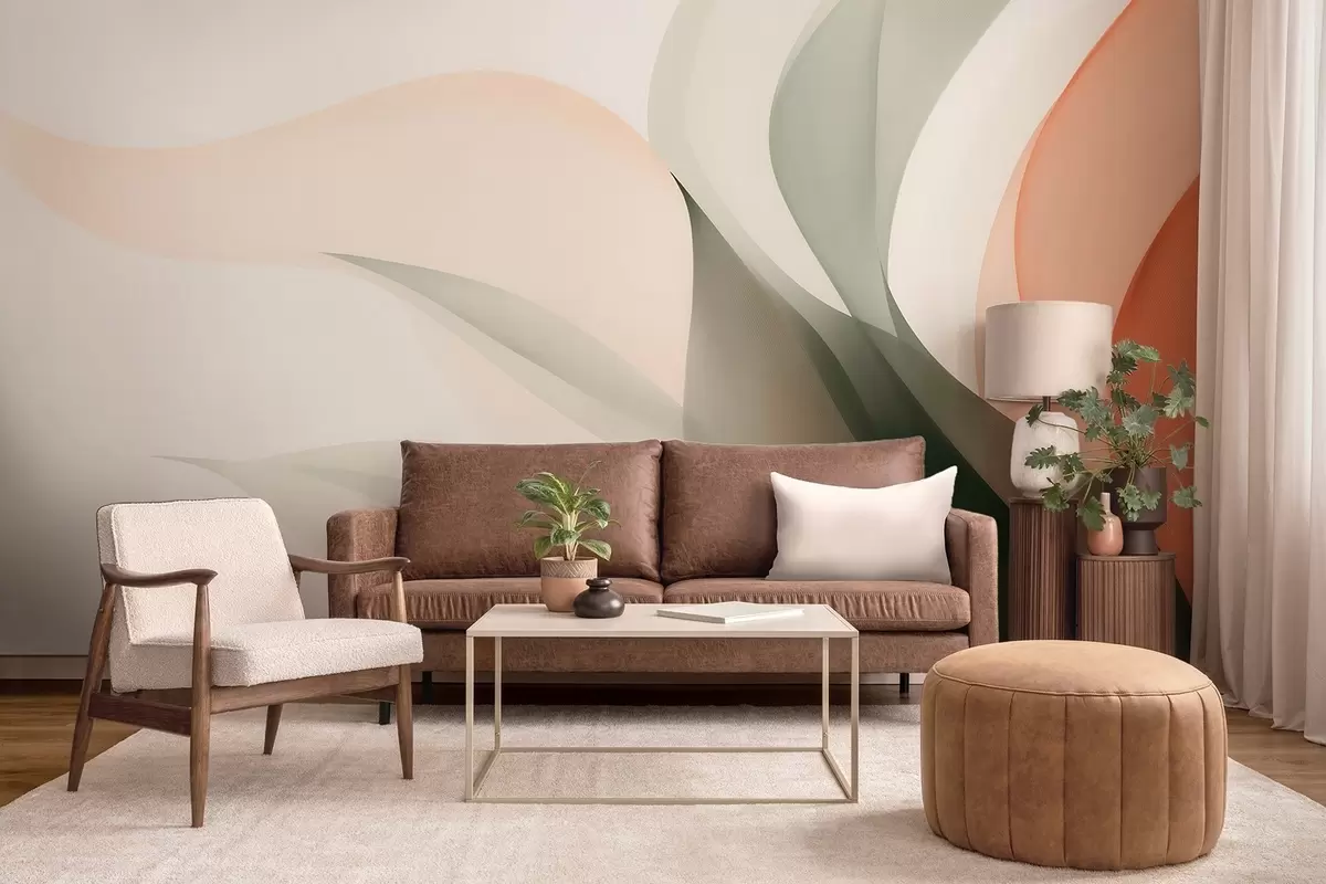 Murais de parede Ondas abstratas em tons de laranja e verde Nr. w09718