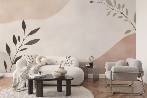 Murais de parede Ondas abstratas em tons de bege-pêssego com ramos Nr. w09722
