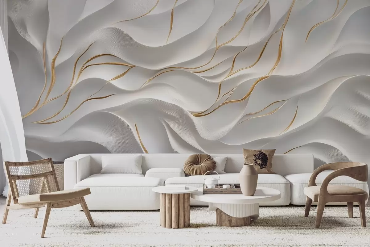 Murais de parede Ondas cinzentas em relevo com detalhes em amarelo Nr. w09724