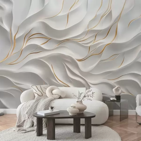 Murais de parede Ondas cinzentas em relevo com detalhes em amarelo Nr. w09724