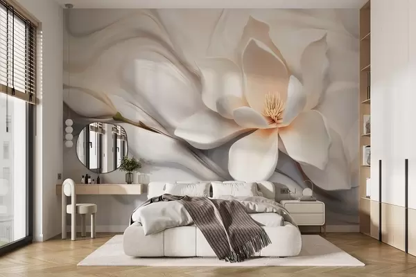 Murais de parede Magnólia branca tridimensional com imitação de textura de mármore em relevo Nr. w09729