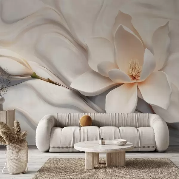 Murais de parede Magnólia branca tridimensional com imitação de textura de mármore em relevo Nr. w09729