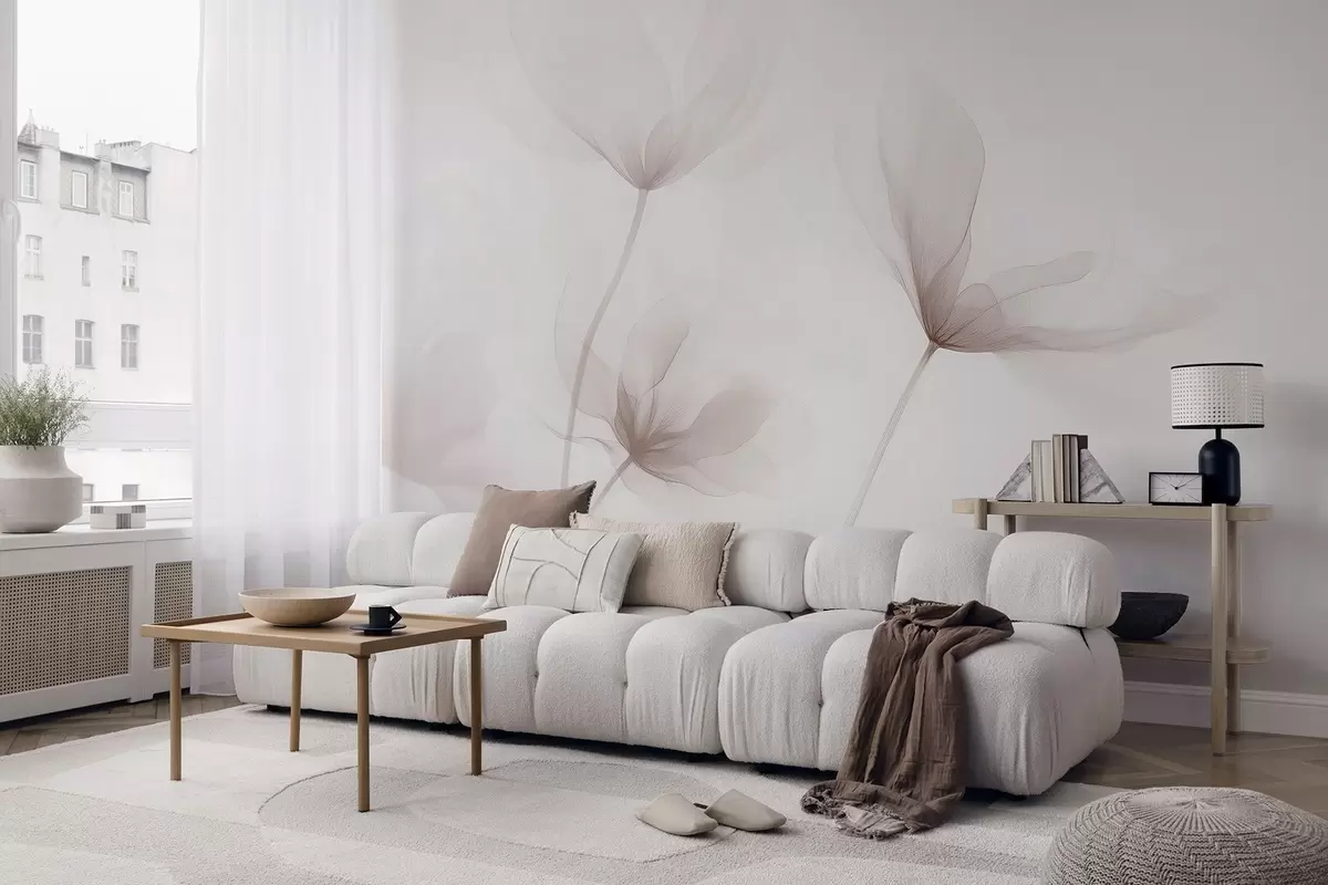 Murais de parede Flores bege arejadas em estilo minimalista e leve Nr. w09734