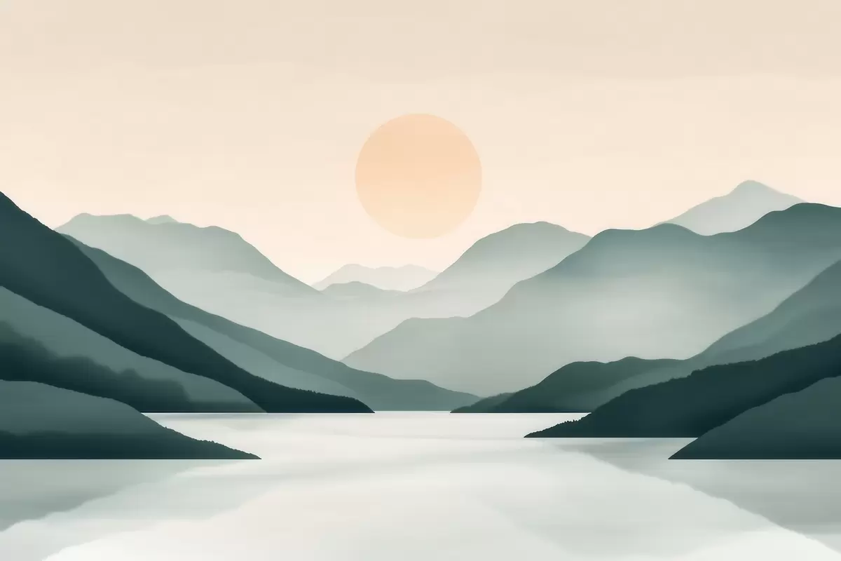 Murais de parede Paisagem tranquila nas montanhas com o sol sobre o lago Nr. w09735