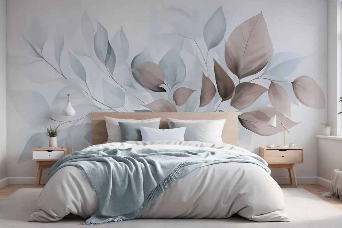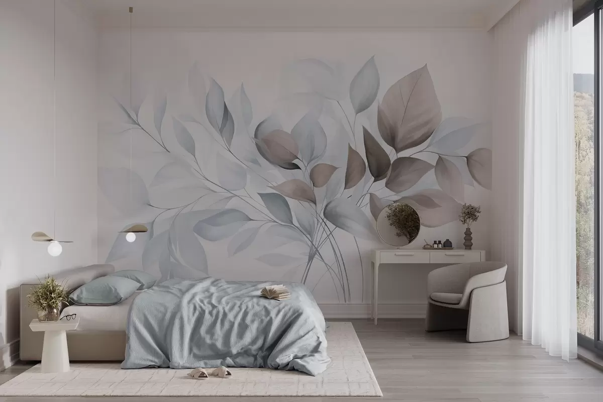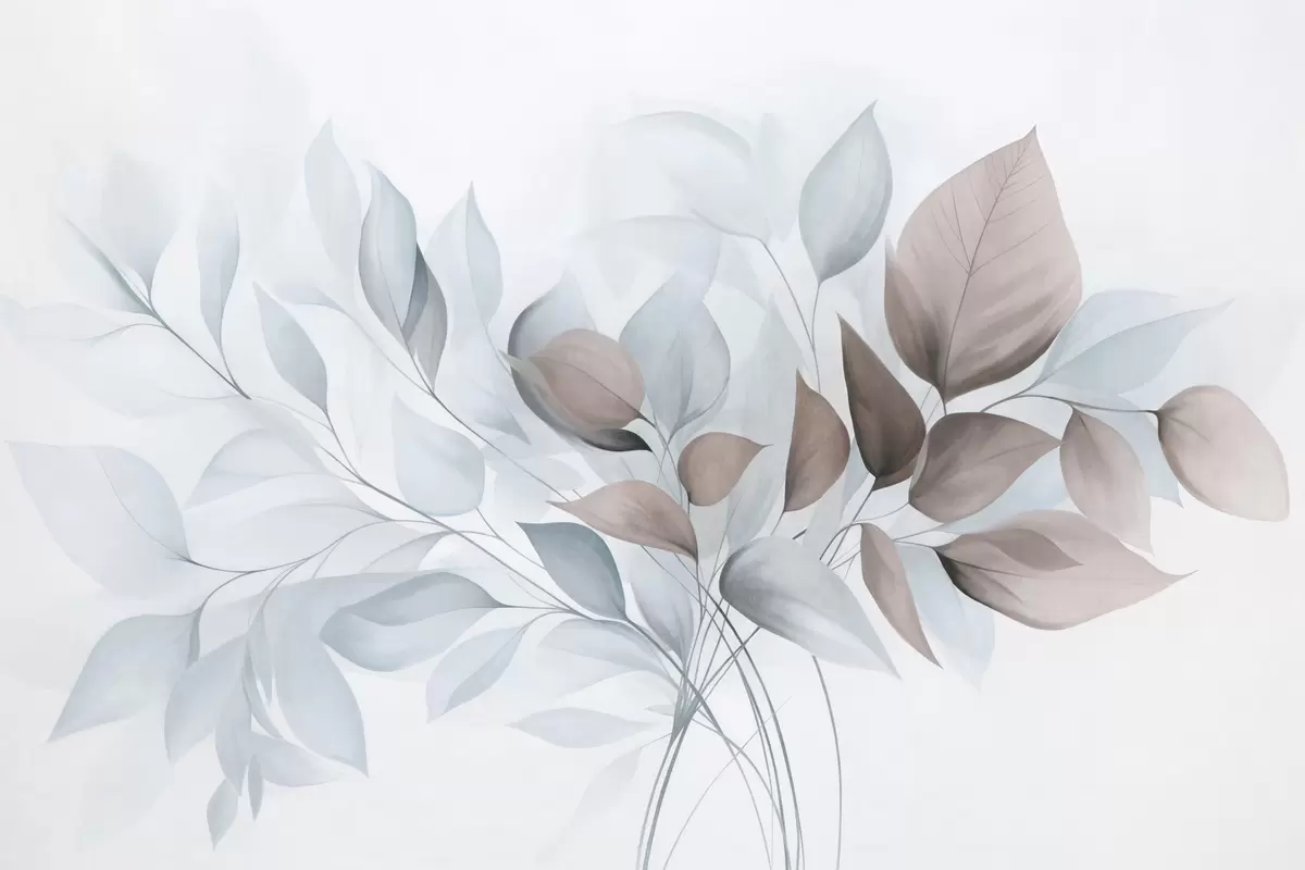 Murais de parede Folhas abstratas translúcidas em tons de azul, bege e marrom, arte texturizada Nr. w09744v1