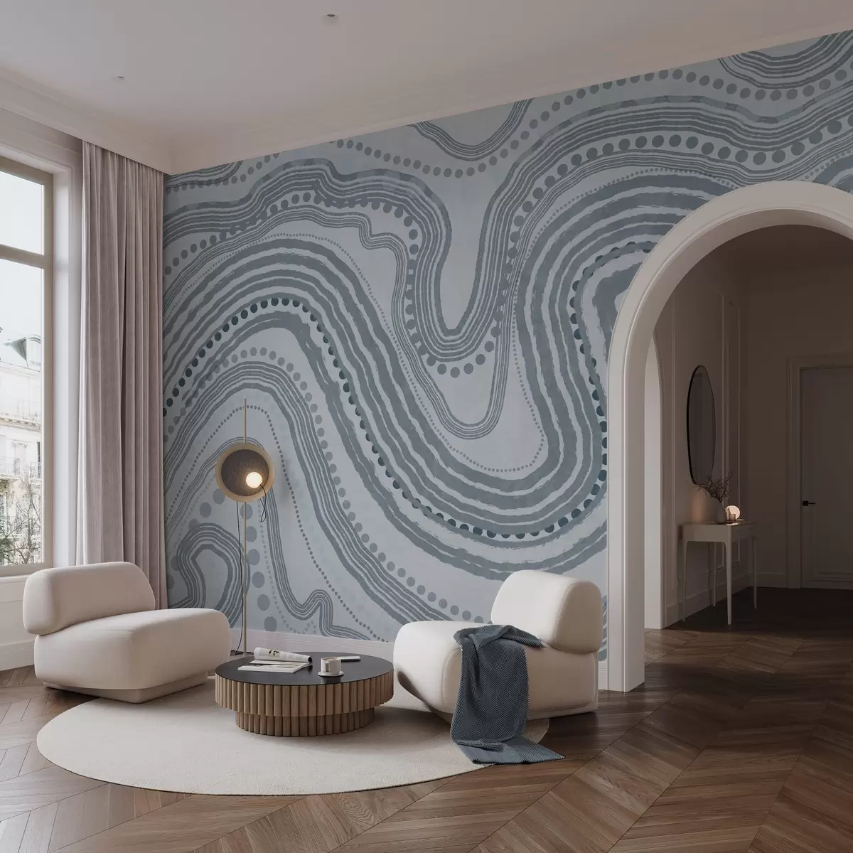 Murais de parede Linhas onduladas e pontos azuis abstratos, arte moderna texturizada Nr. w09747v3