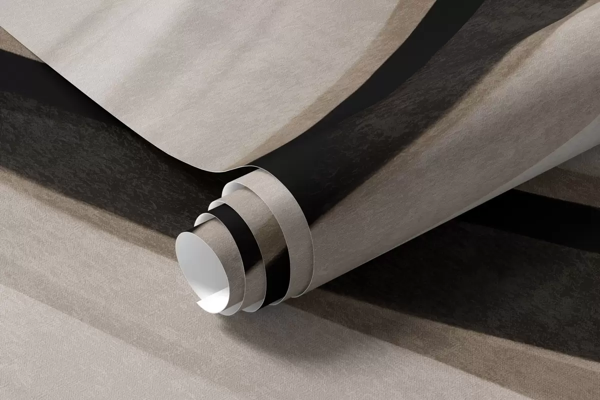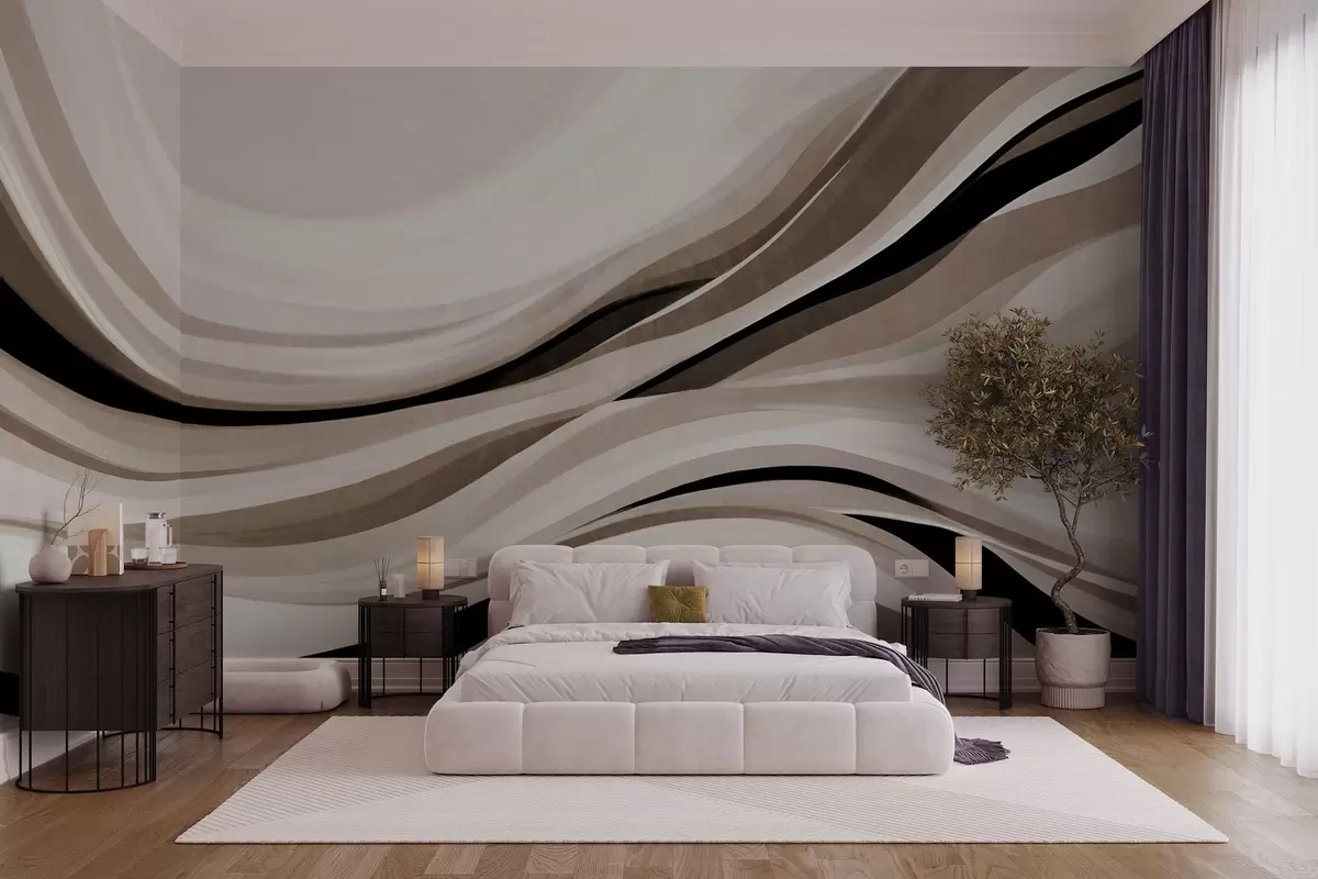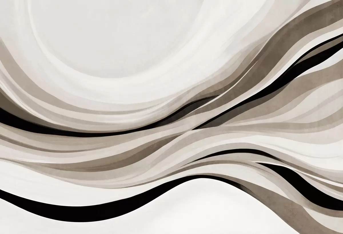 Murais de parede Linhas abstratas onduladas em tons de bege e preto contra um fundo claro, arte texturizada Nr. w09748