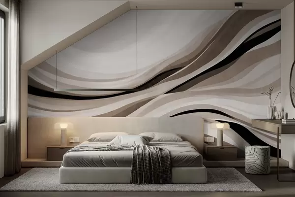 Murais de parede Linhas abstratas onduladas em tons de bege e preto contra um fundo claro, arte texturizada Nr. w09748