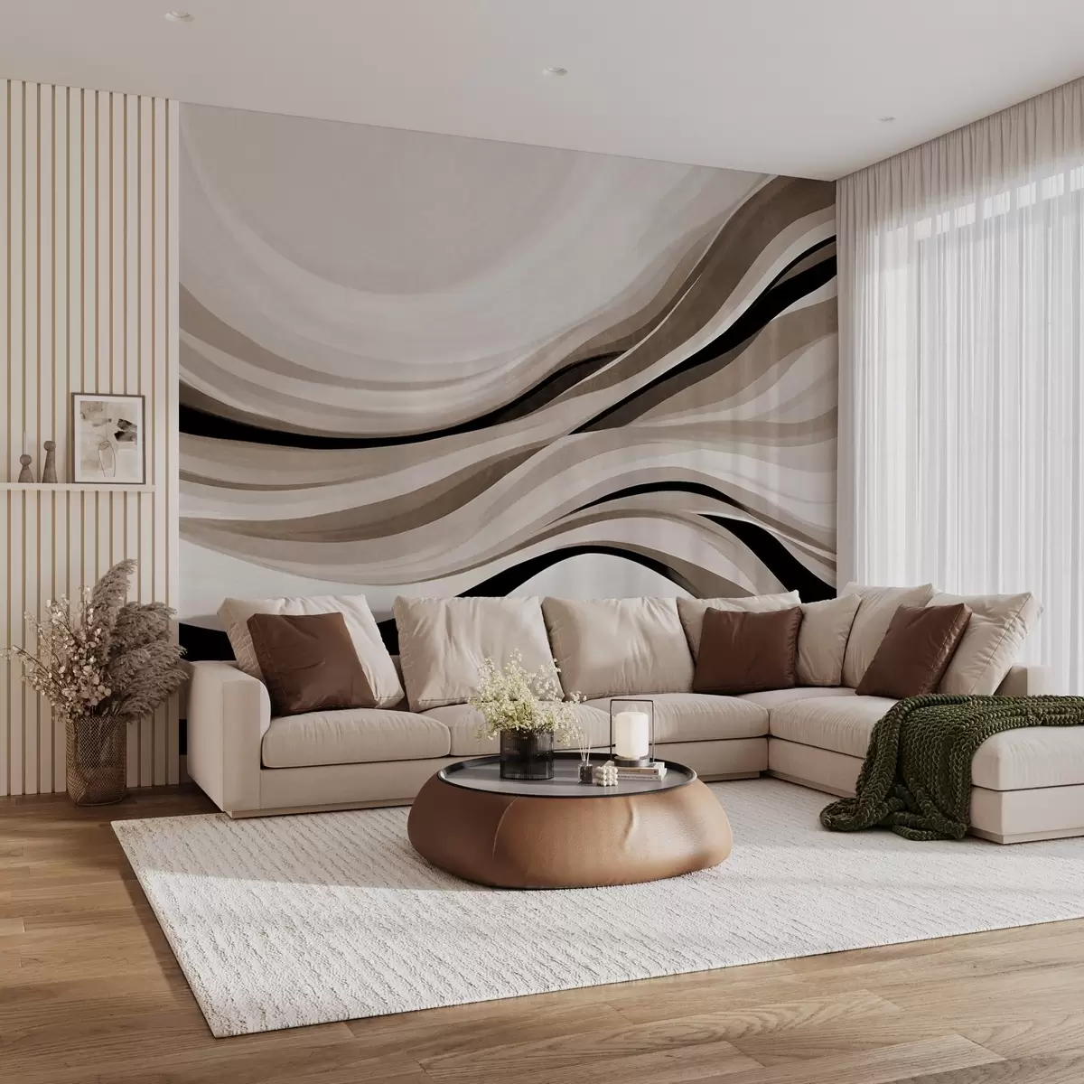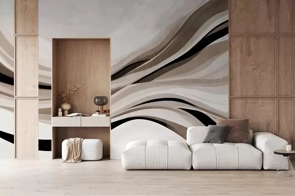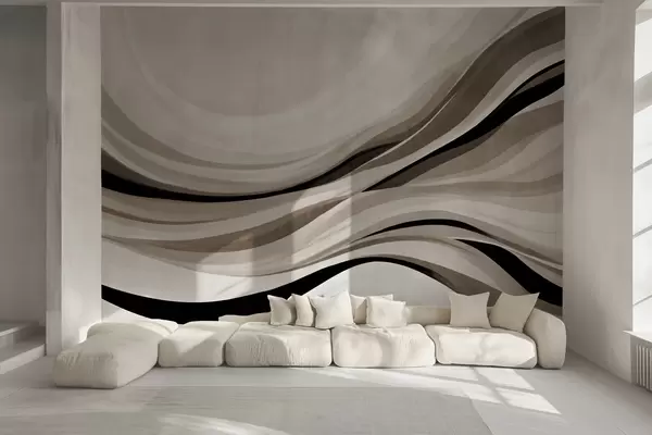 Murais de parede Linhas abstratas onduladas em tons de bege e preto contra um fundo claro, arte texturizada Nr. w09748