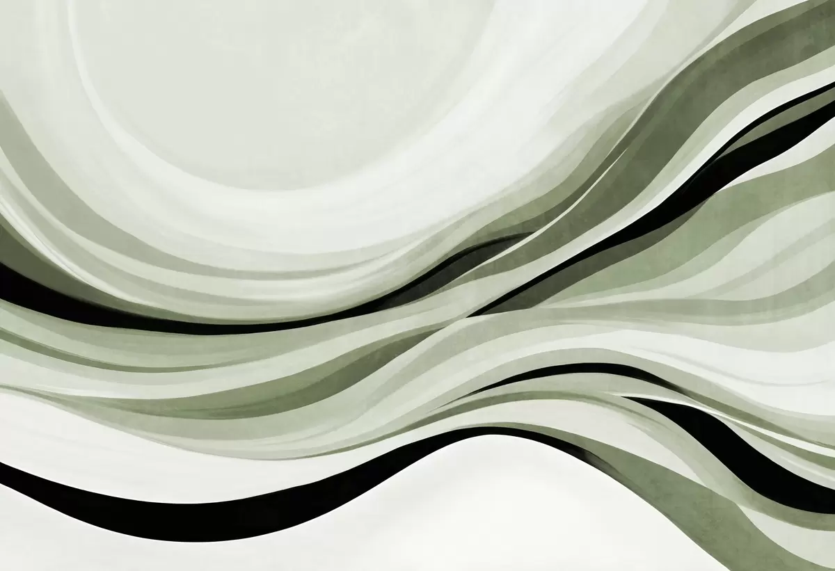 Murais de parede Linhas abstratas onduladas em tons de verde e preto contra um fundo claro, arte texturizada Nr. w09748v1
