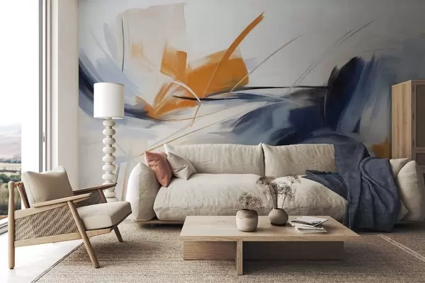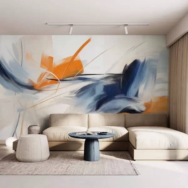 Murais de parede Estilo de pintura abstrata com pinceladas texturizadas em laranja e azul Nr. w09755