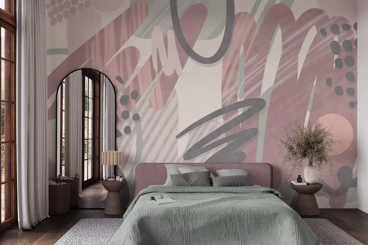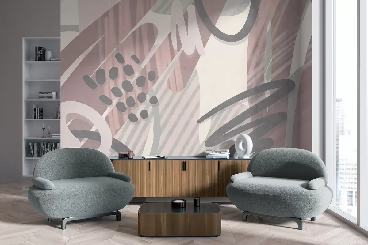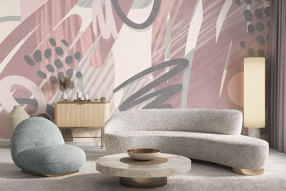 Murais de parede Estampa abstrata com textura, apresentando formas orgânicas, rabiscos e pontos em tons pastéis suaves Nr. w09774v1