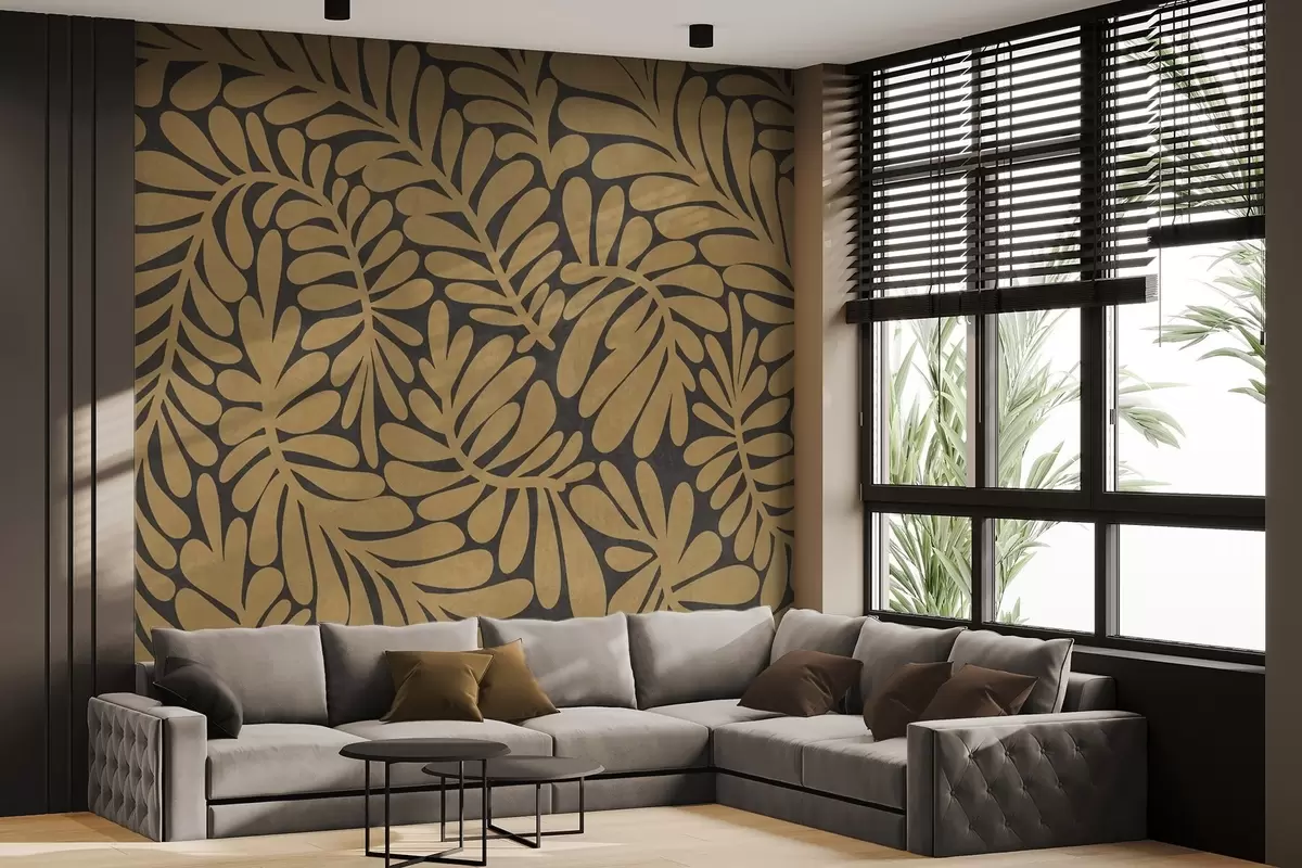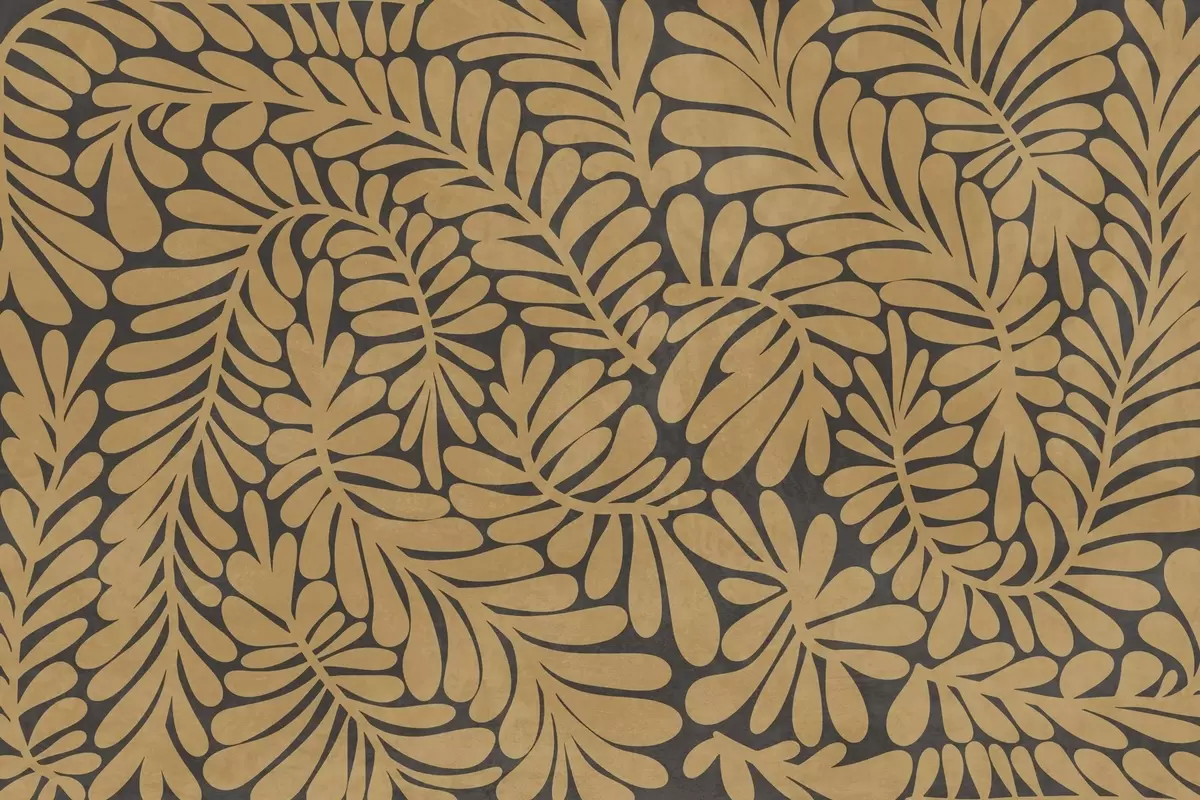 Murais de parede Folhas amarelo-mostarda estilizadas sobre um fundo cinza escuro, arte texturizada Nr. w09775