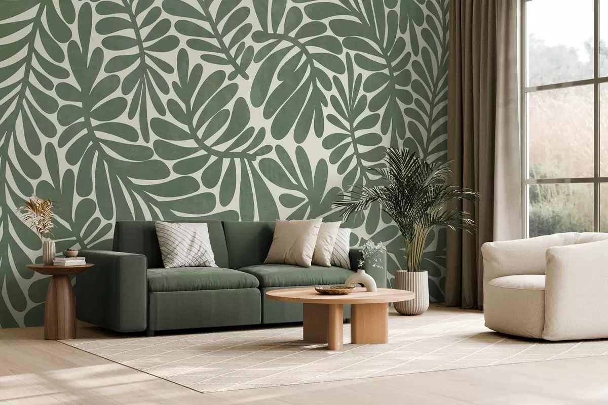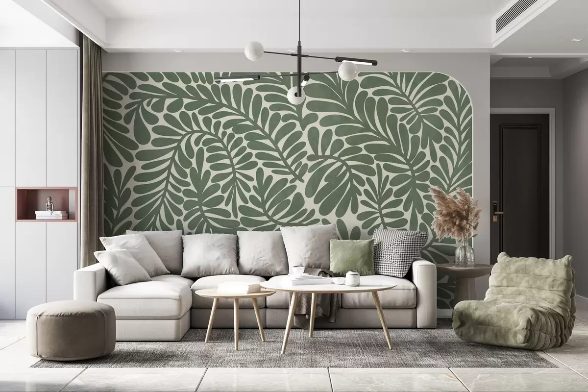 Murais de parede Folhas verdes estilizadas sobre um fundo claro, arte texturizada Nr. w09775v2