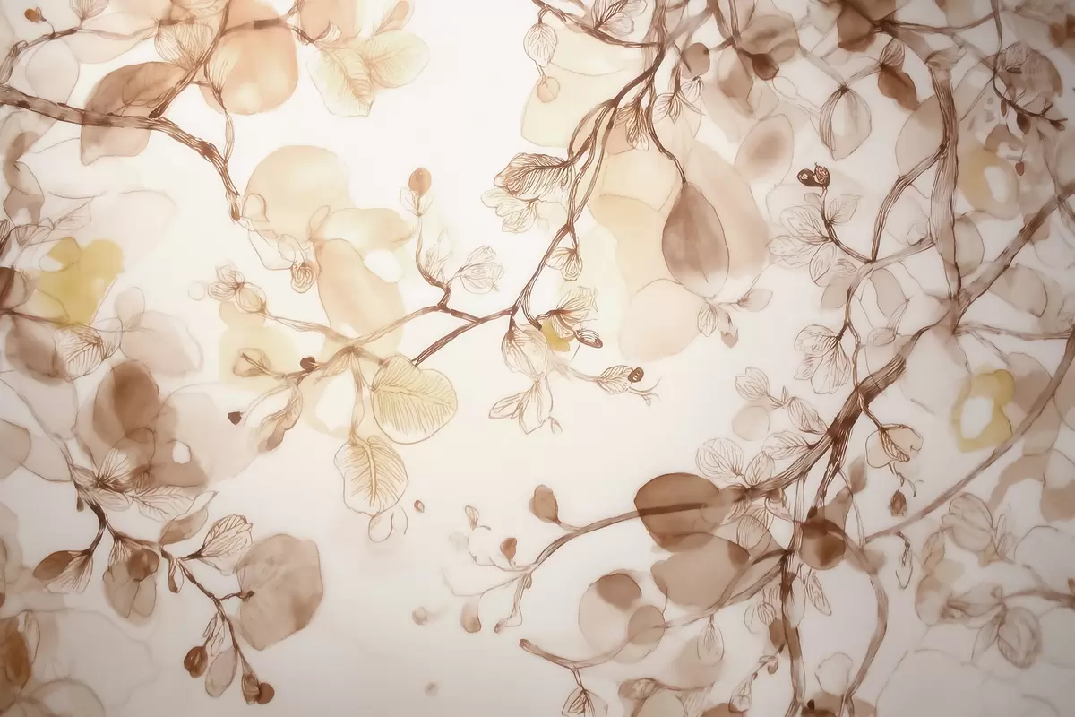 Murais de parede Galhos suspensos e esvoaçantes em tons de bege, em estilo aquarela Nr. w09795