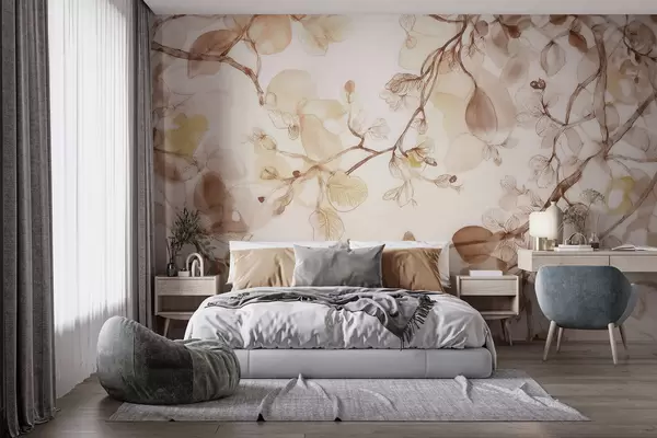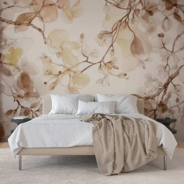 Murais de parede Galhos suspensos e esvoaçantes em tons de bege, em estilo aquarela Nr. w09795
