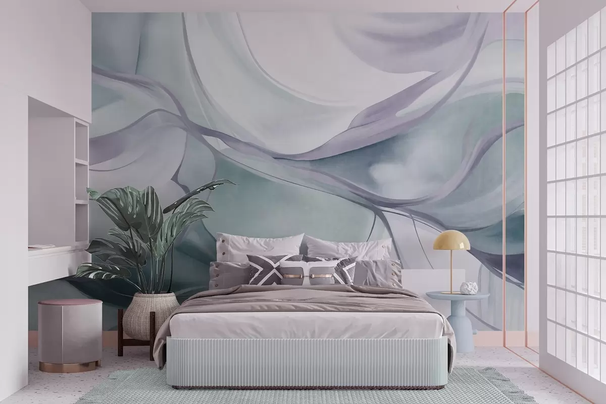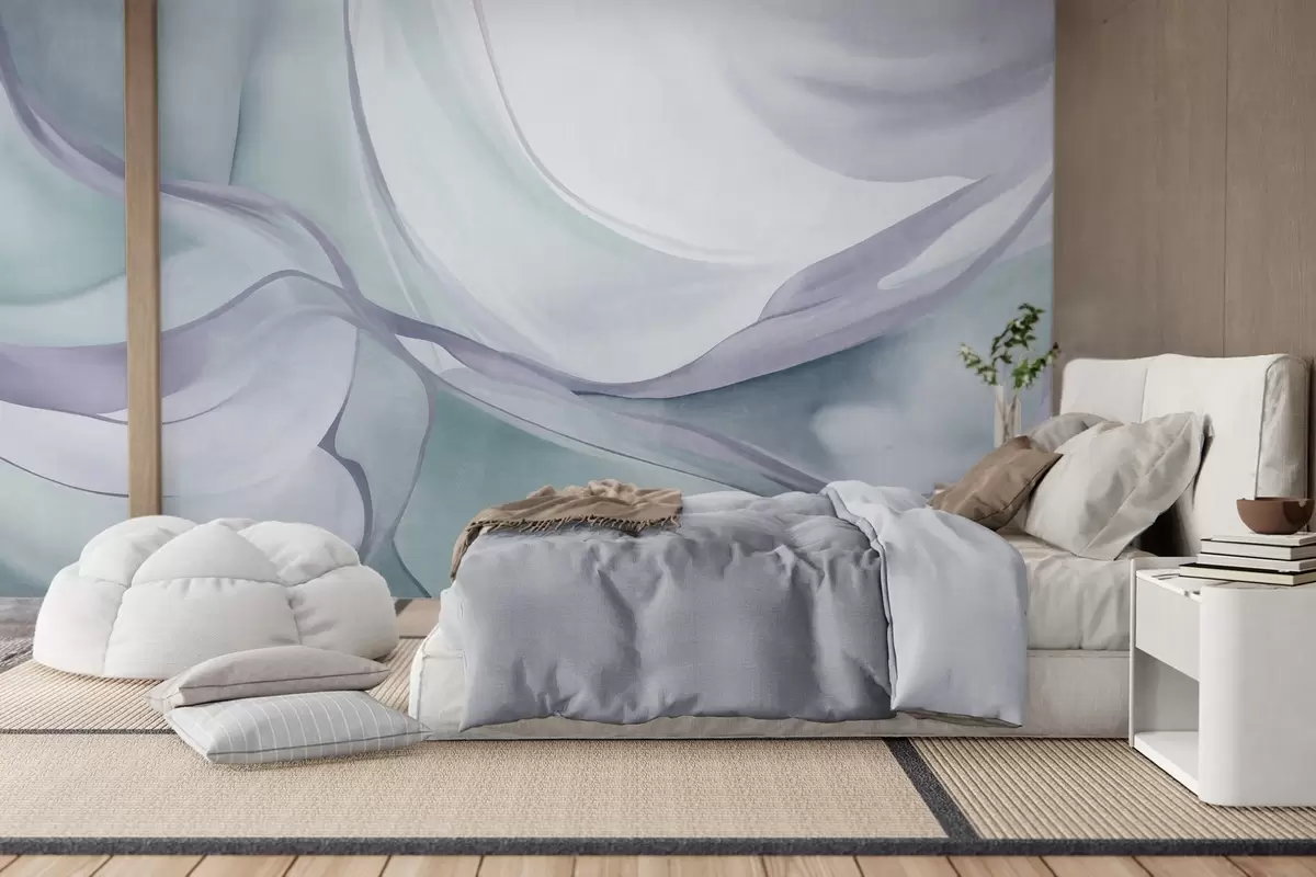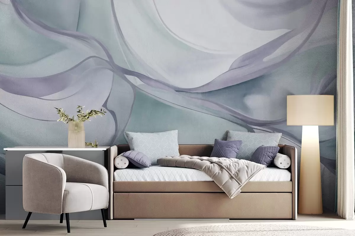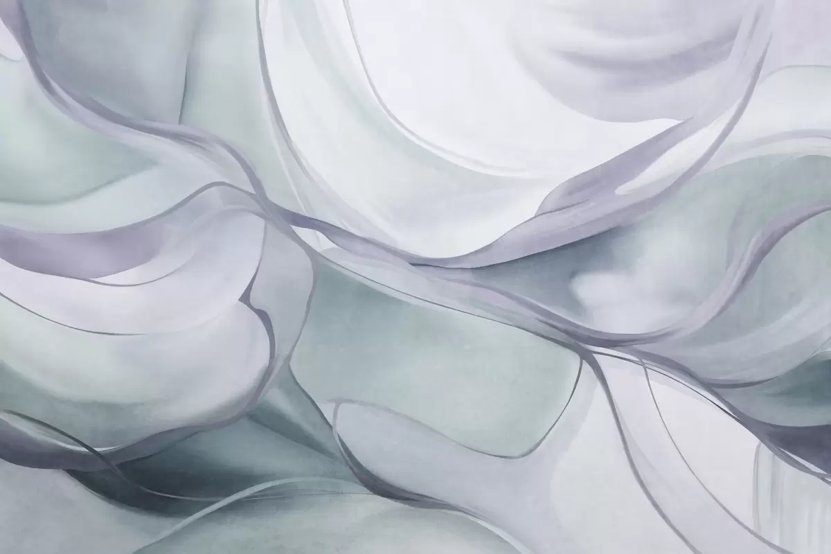 Murais de parede Formas fluidas com textura abstrata em tons de azul e cinza, delineadas por linhas delicadas Nr. w09818v1