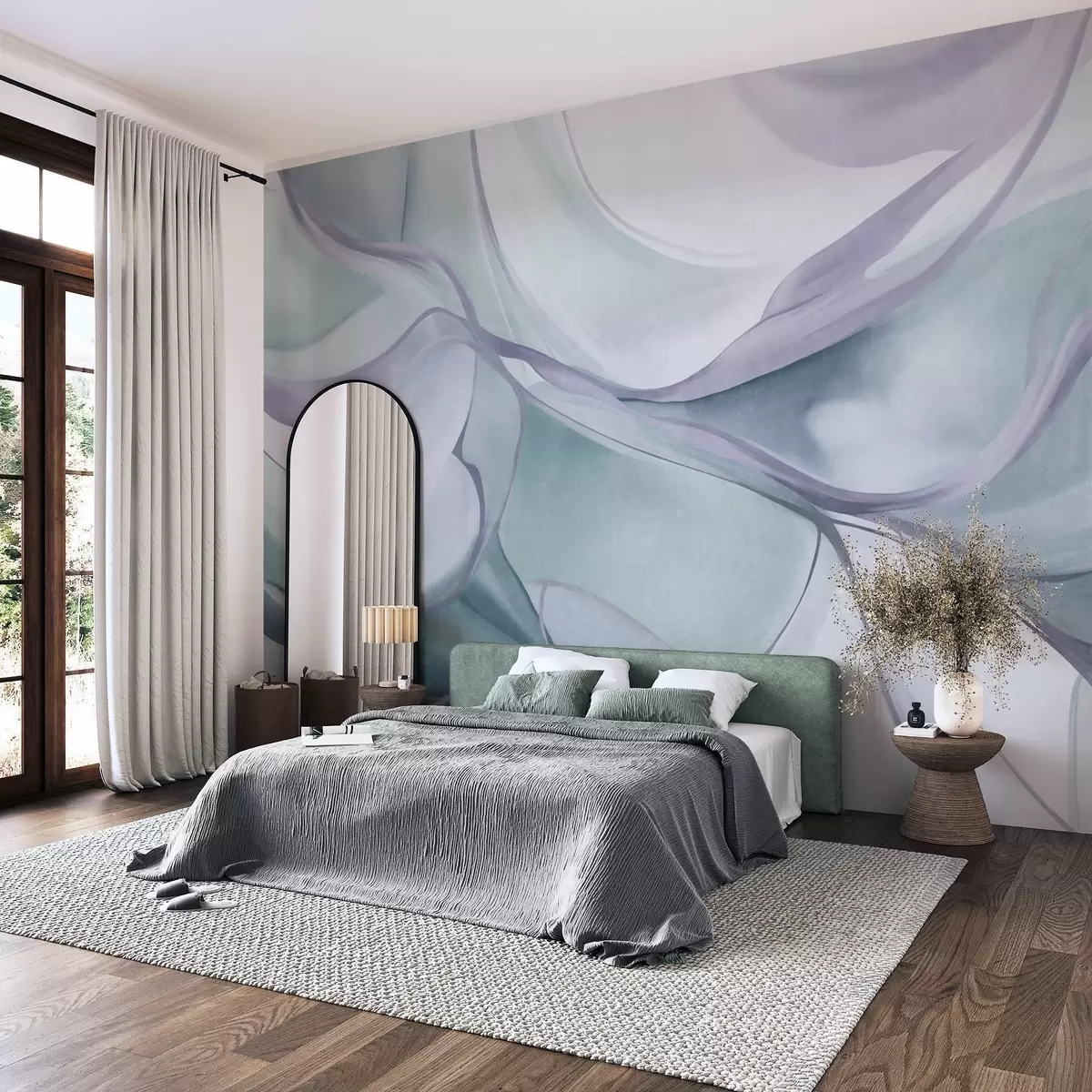 Murais de parede Formas fluidas com textura abstrata em tons de azul e cinza, delineadas por linhas delicadas Nr. w09818v1