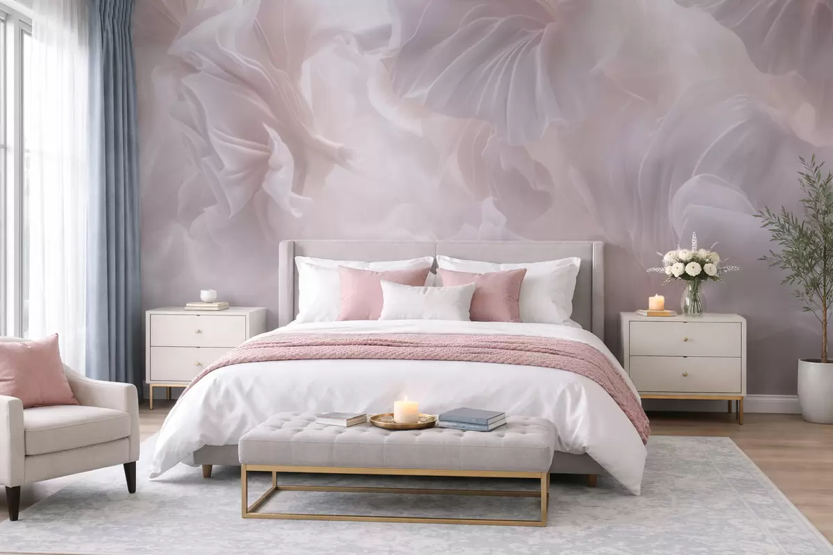 Murais de parede Formas florais abstratas com pétalas esvoaçantes em tons pastéis Nr. w09841