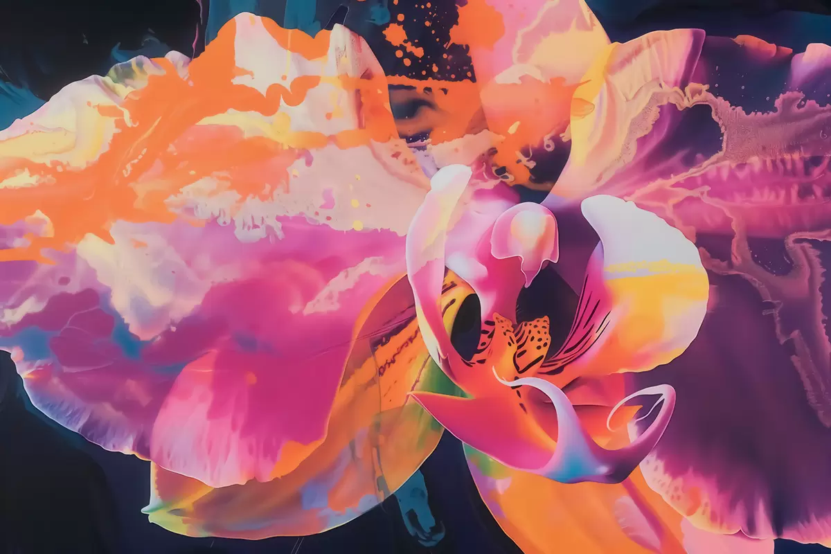 Murais de parede Uma flor de orquídea abstrata e vibrante, com cores intensas e formas dinâmicas, em estilo aquarela Nr. w09855
