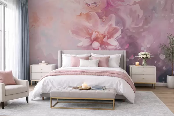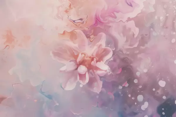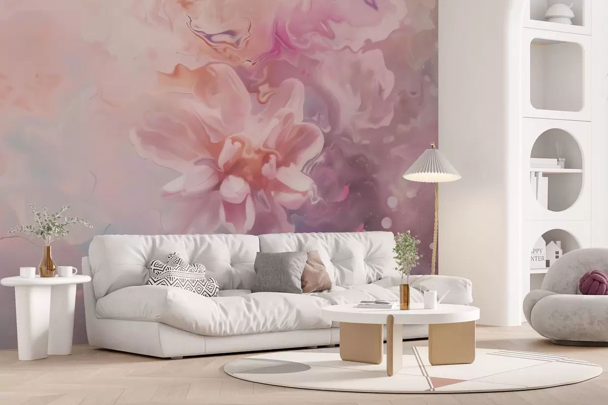 Murais de parede Uma composição abstrata com uma flor e suaves pinceladas em rosa, em estilo aquarela Nr. w09859