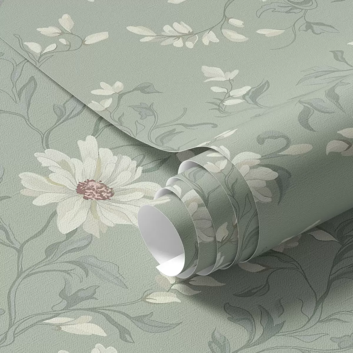 Papel de parede Flores brancas com folhas onduladas Nr. a00001