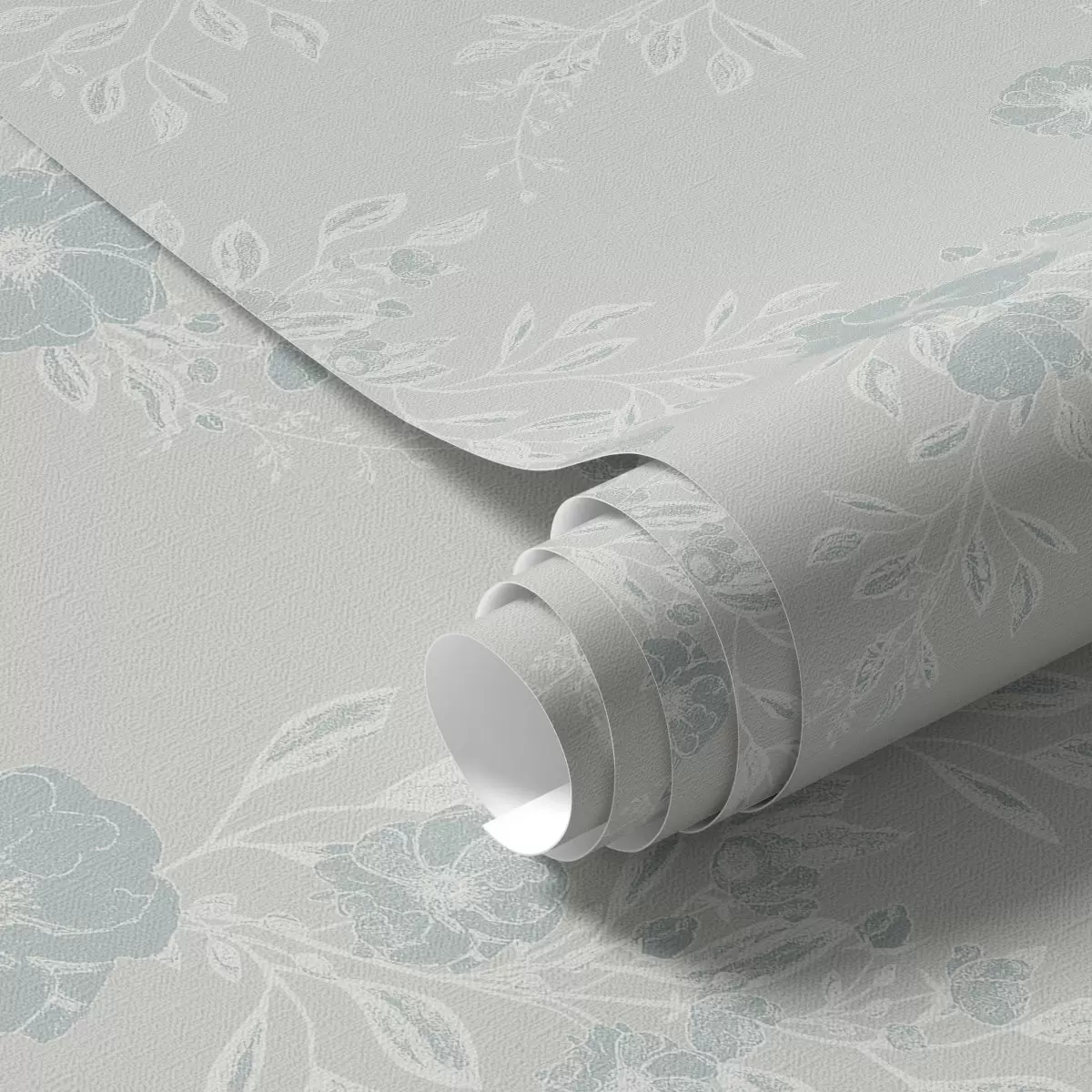 Papel de parede Flores com folhas claras em um fundo azul a00006v2