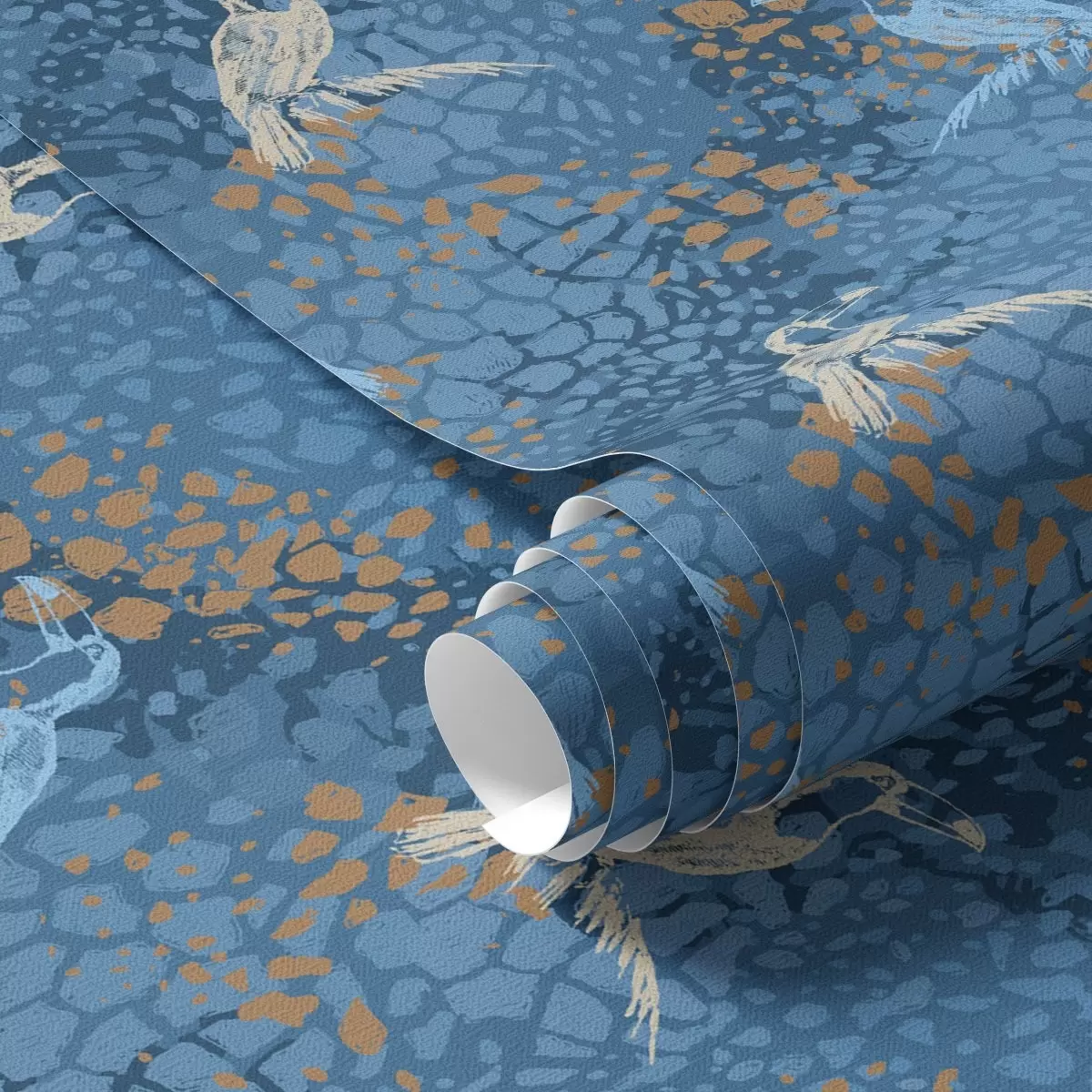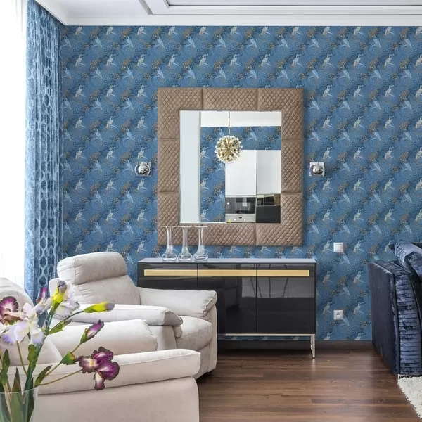 Papel de parede Pássaros azuis e brancos em um fundo azul Nr. a00009